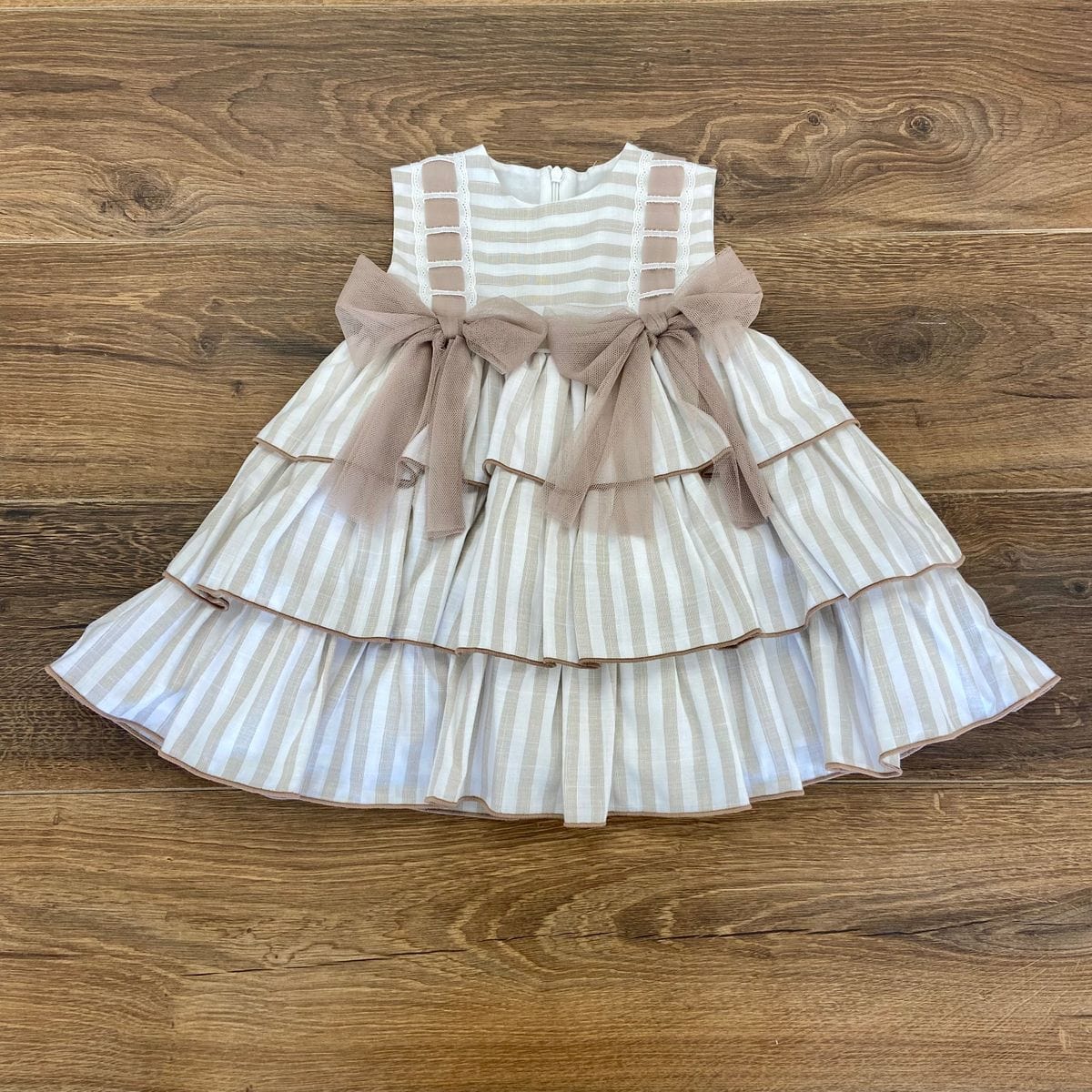 Abitino con balze, con passamaneria e fiocchi in tulle.