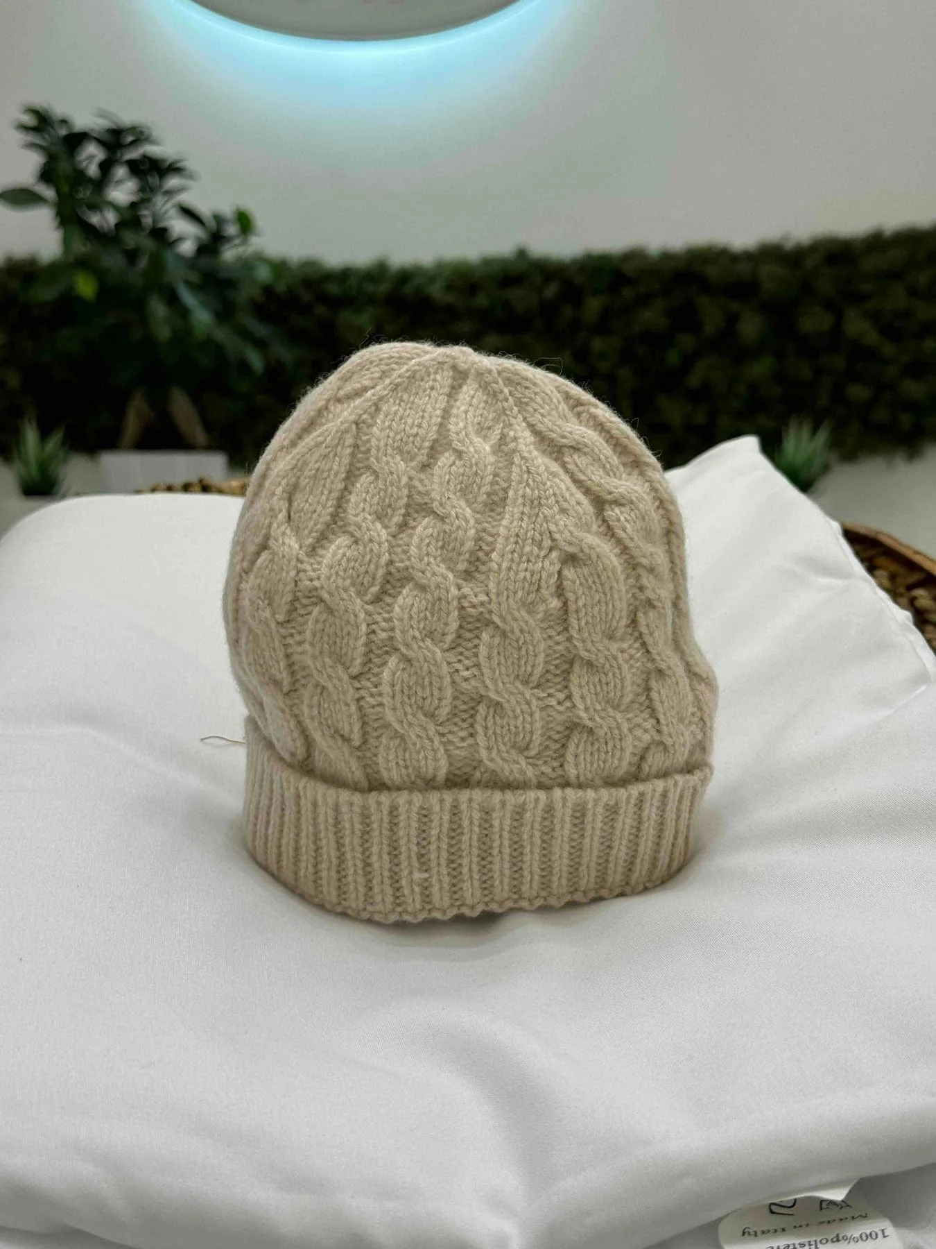 Cappellino con trecce di lana e cashmere