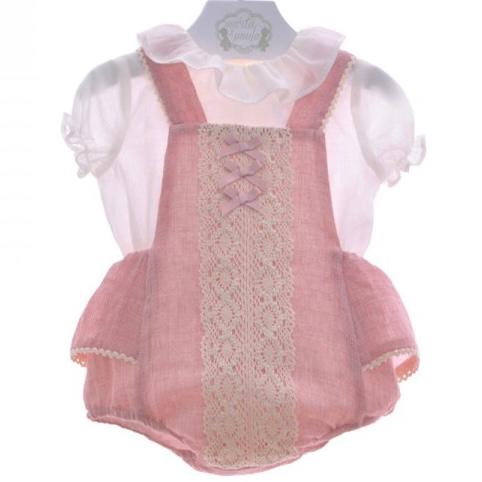Salopette con camicia rosa