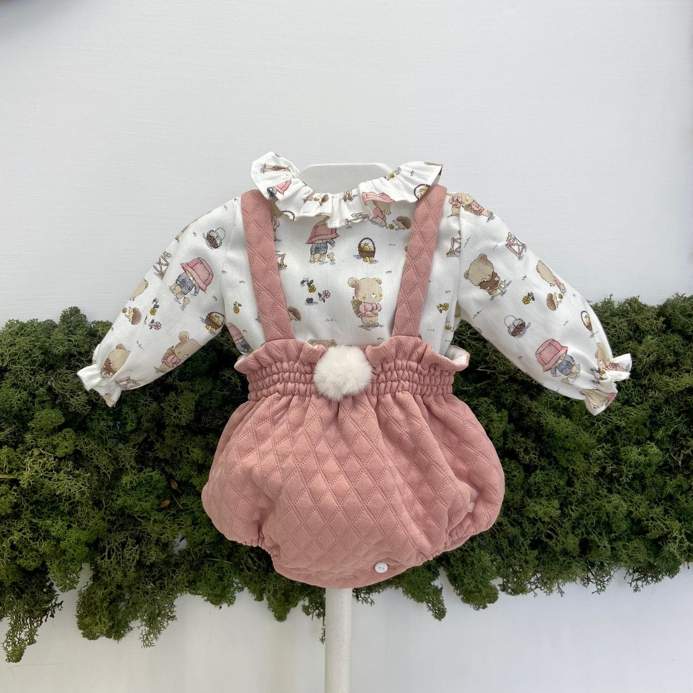 Completo salopette più camicia fantasia orsetti