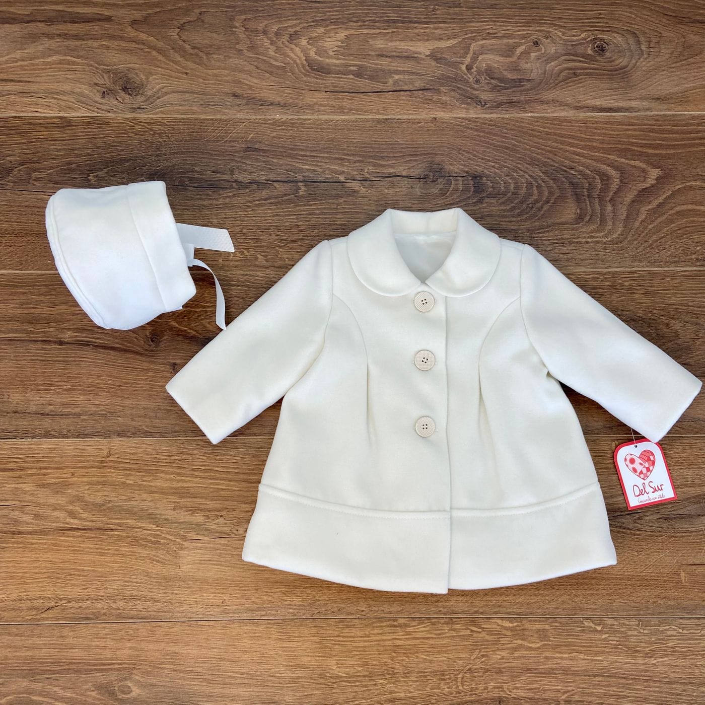 Cappottino in panno con cuffia abbinata