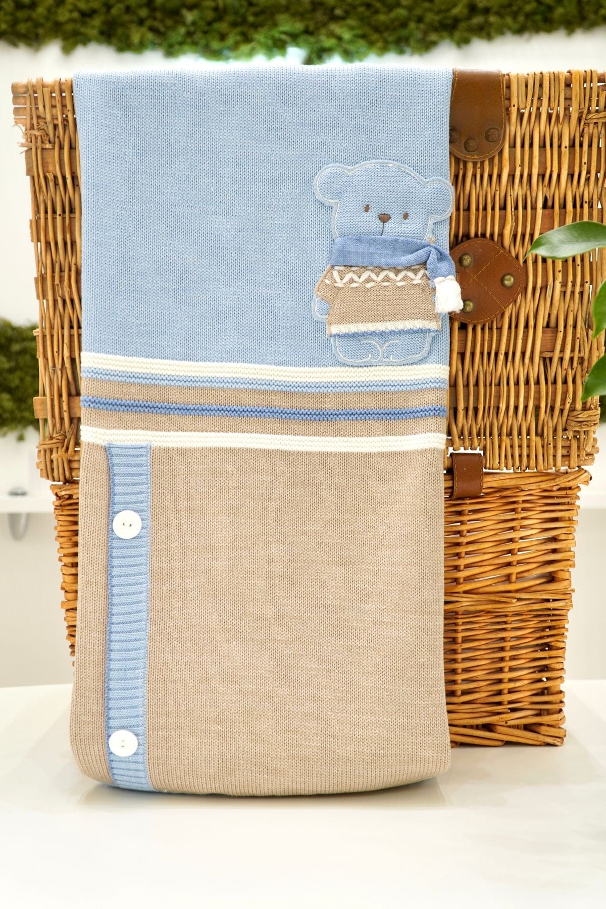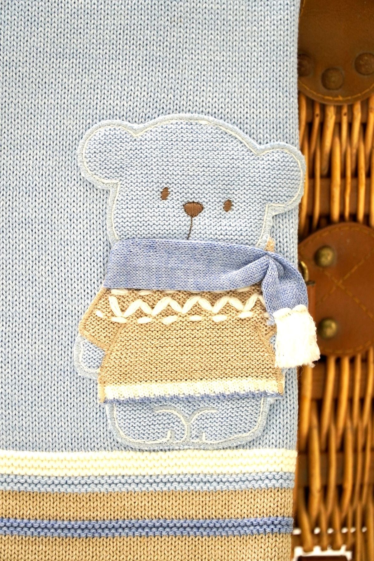 Copertina in color cielo con orsetto in pura lana 100%