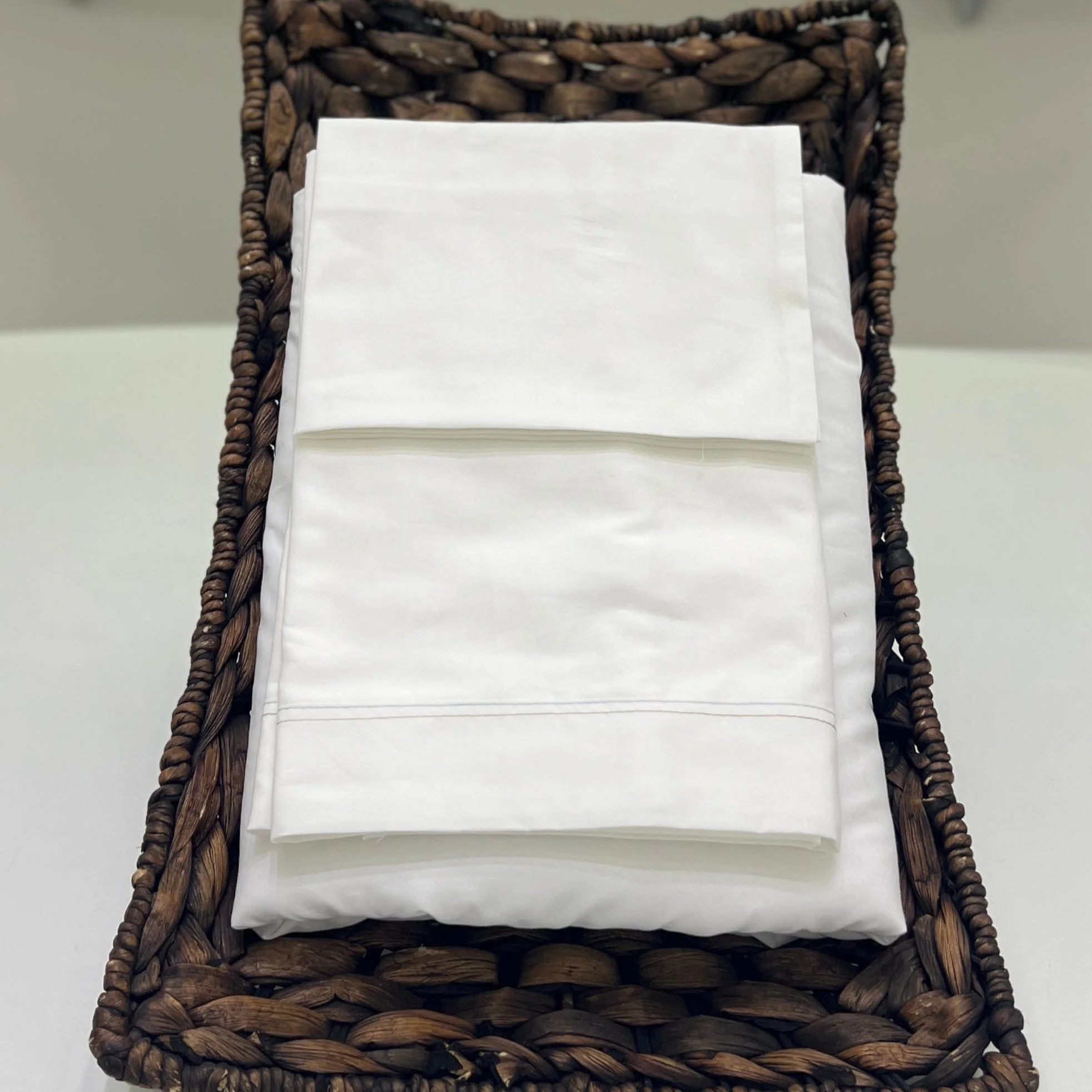 Set lenzuola tre pezzi per culla o navicella in cotone con leggero ricamo in celeste e beige.