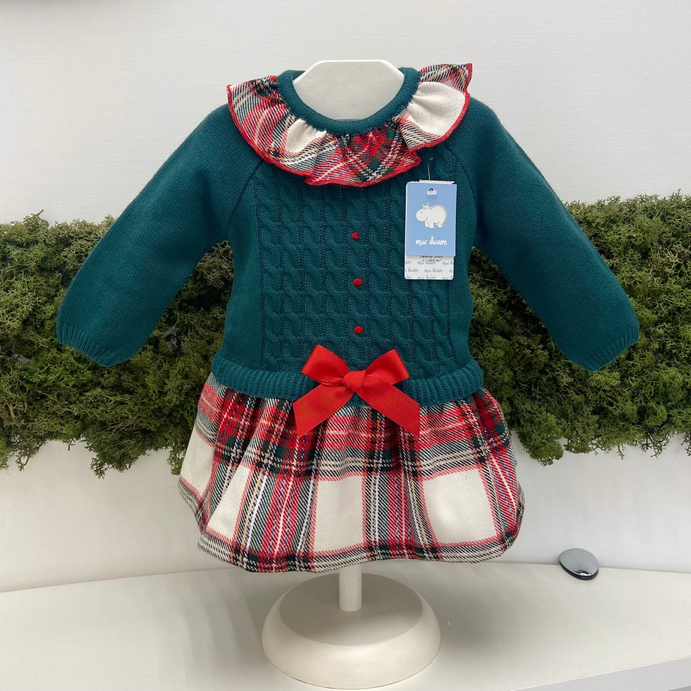 abiti con corpetto in lana con trecce fiocco e gonnellina scozzese