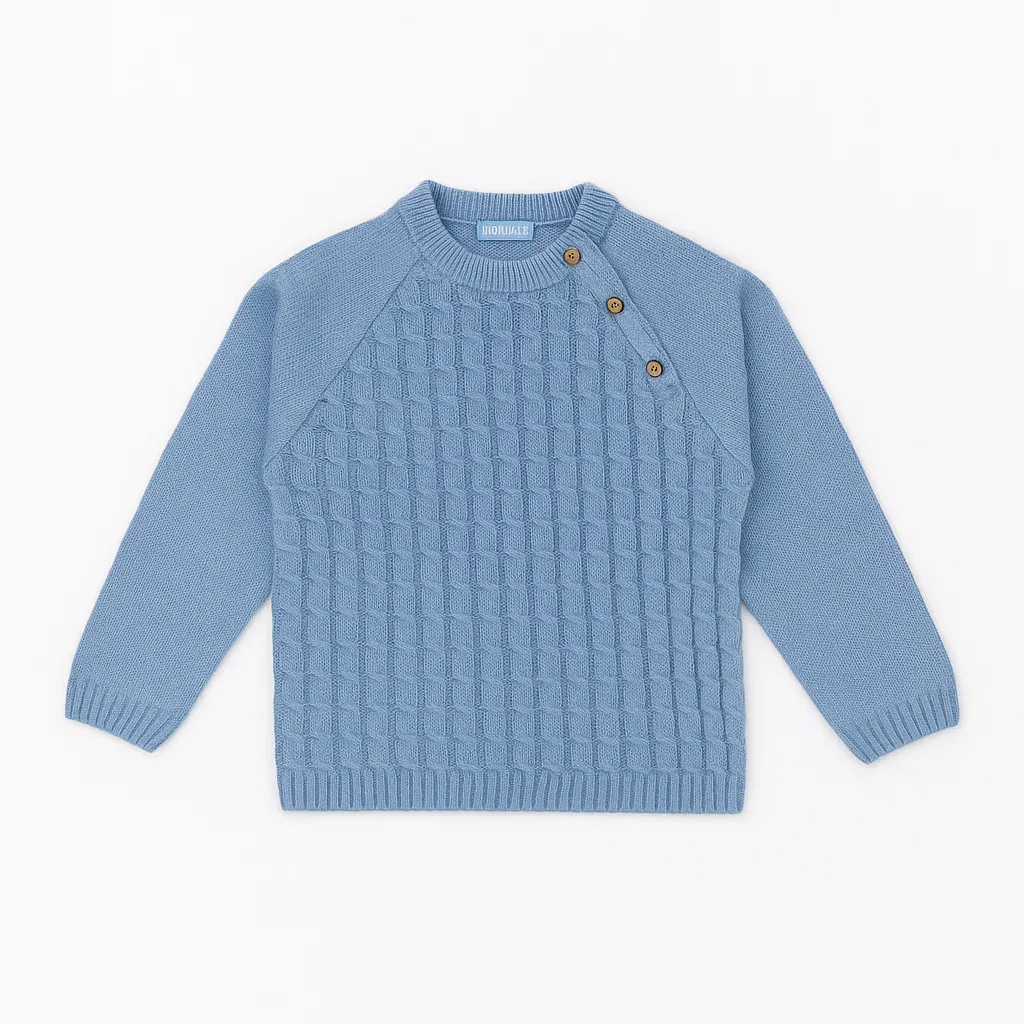 Maglia in tricot a maniche lunghe, caratterizzata da una lavorazione geometrica sul davanti che aggiunge profondità e raffinatezza. Le maniche raglan e l’apertura laterale con tre bottoni facilitano la vestibilità, mentre polsini e fondo a costine completano il design. Un capo essenziale e curato nei dettagli, ideale per il guardaroba quotidiano.