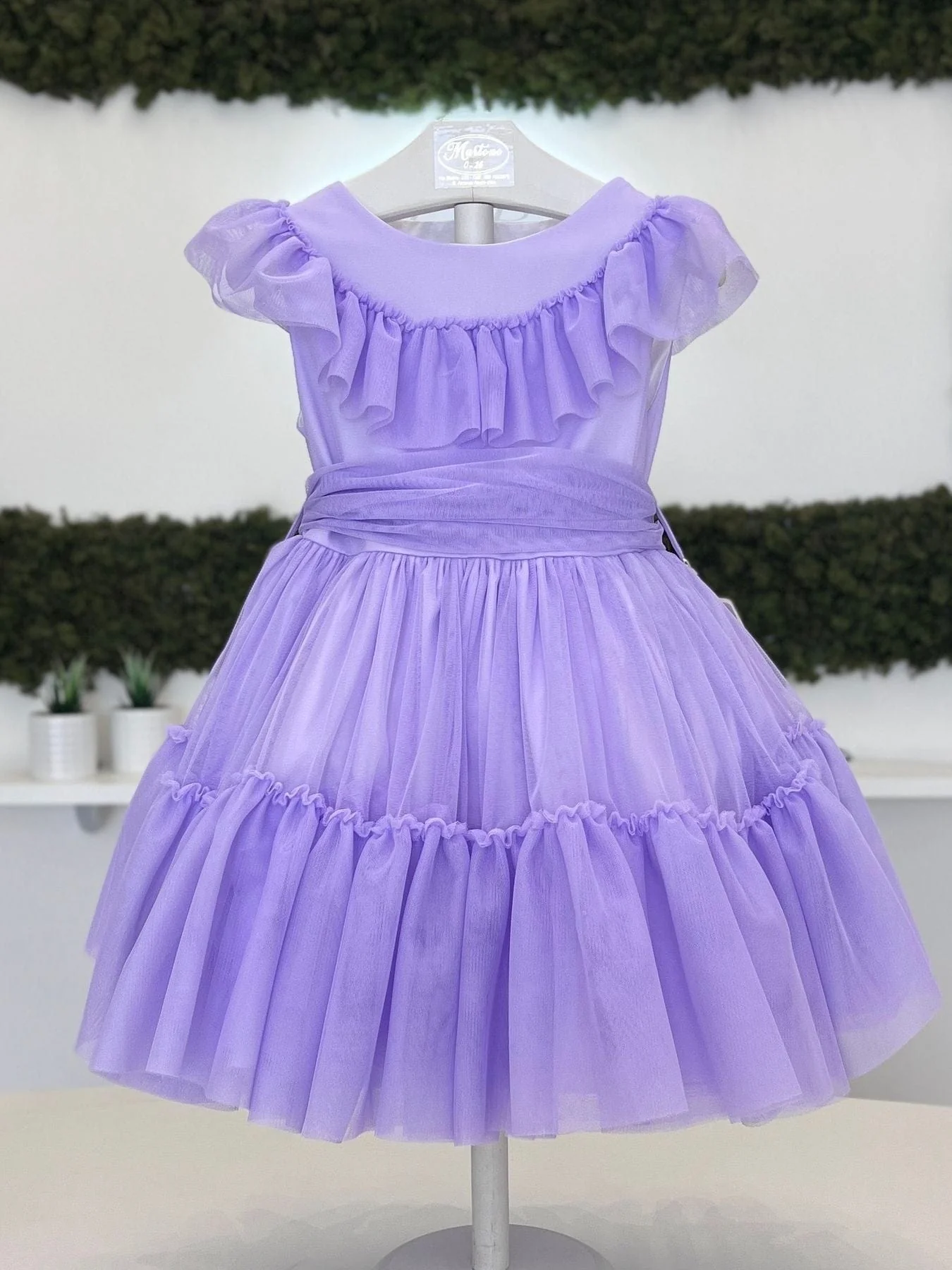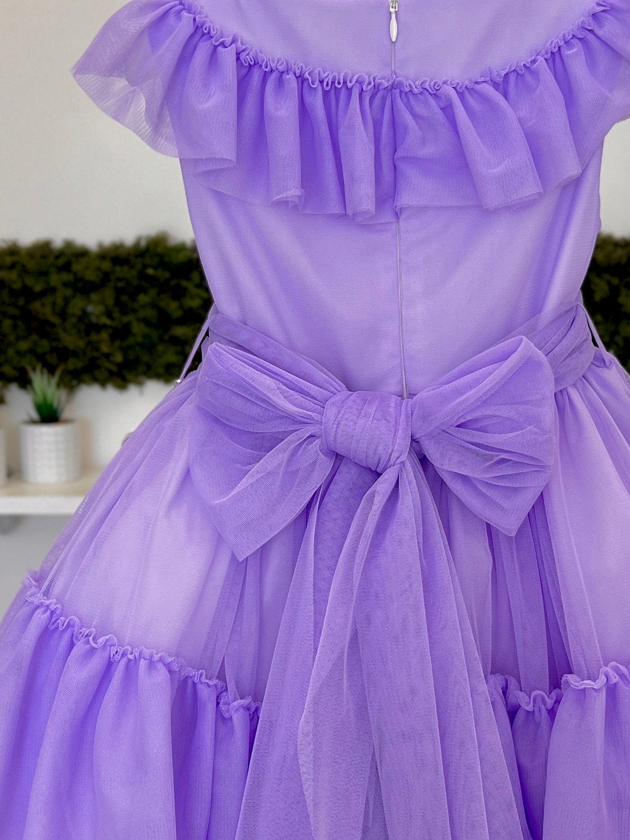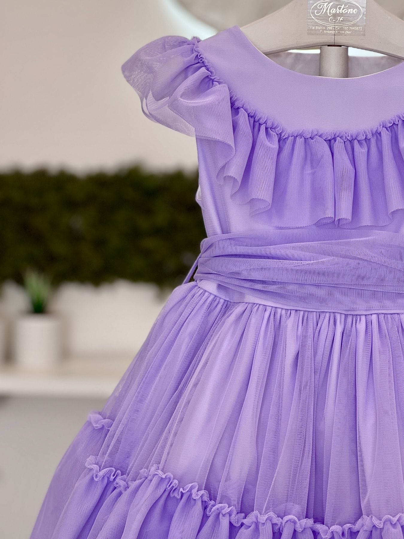 Abito bimba in tulle a balze con volant fiocco sul retro.