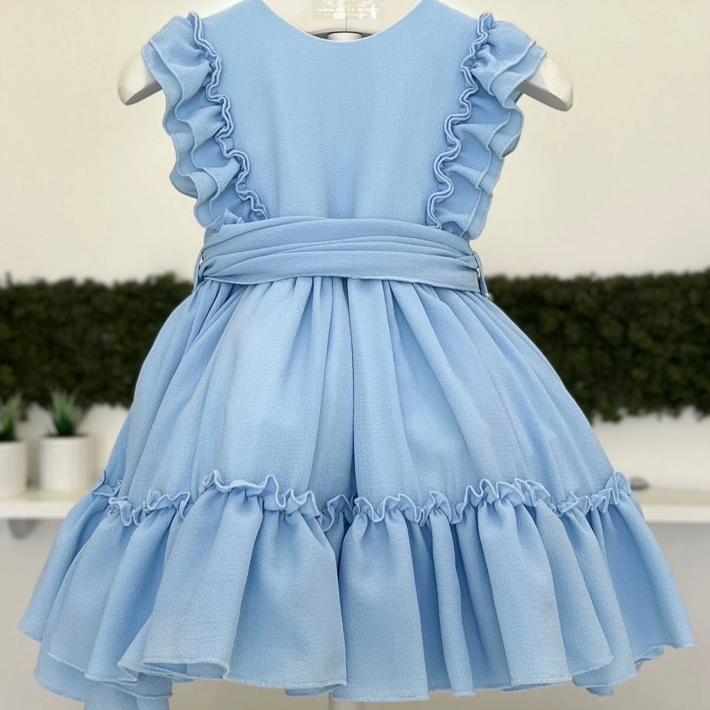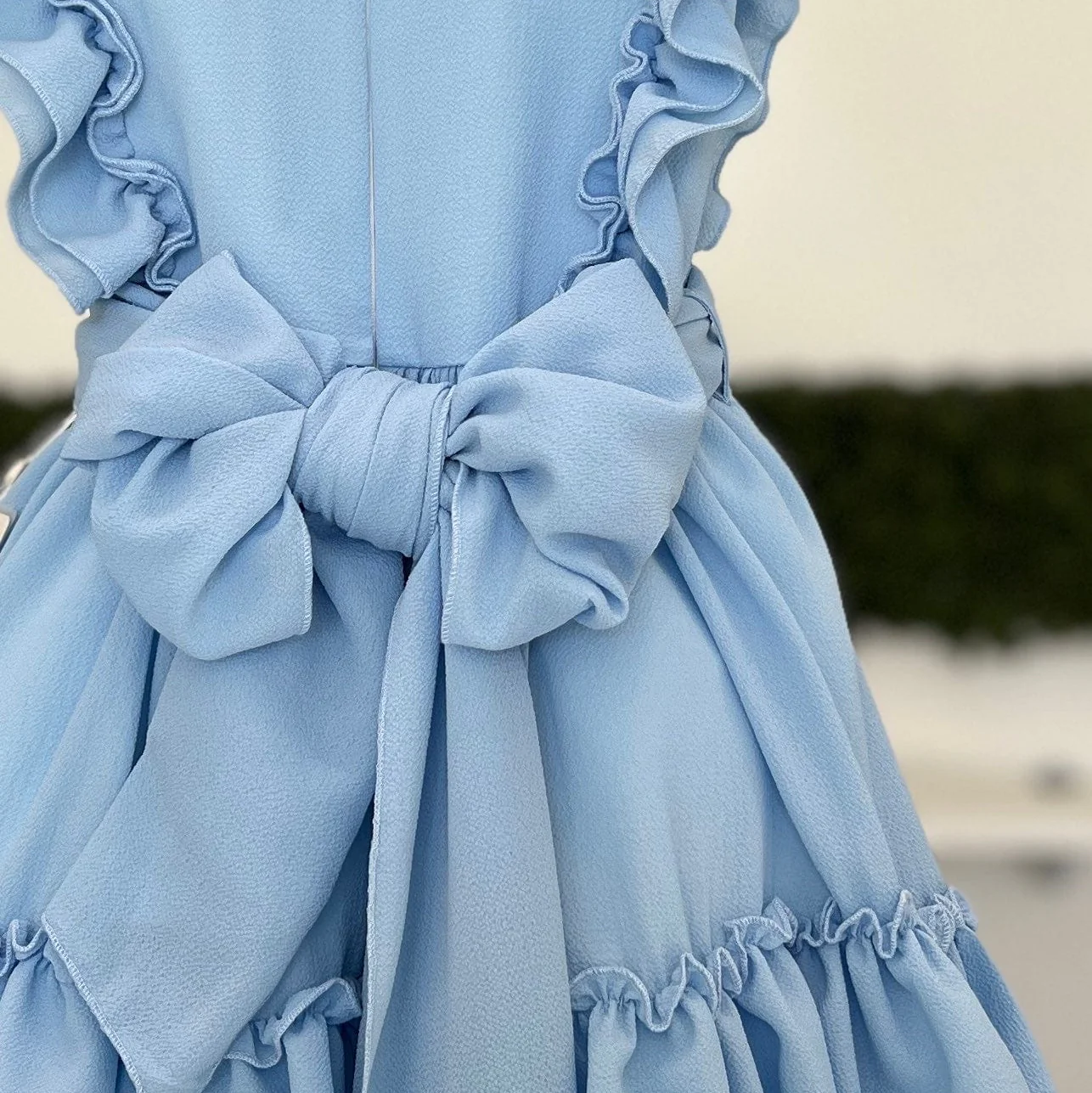Abito baby a balze con volant e fiocco sul retro.