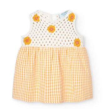 Questo è un vestito popelín a quadri per neonate. Il tessuto è piatto, ideale per l’estate. Il colore è un vivace quadri giallo che aggiunge un tocco di allegria. Il vestito ha un collo rotondo e spalline, rendendolo comodo e facile da indossare. La decorazione a quadri è un dettaglio classico che non passa mai di moda. Questo vestito è perfetto per le giornate estive, offrendo comfort e stile alla tua piccola.