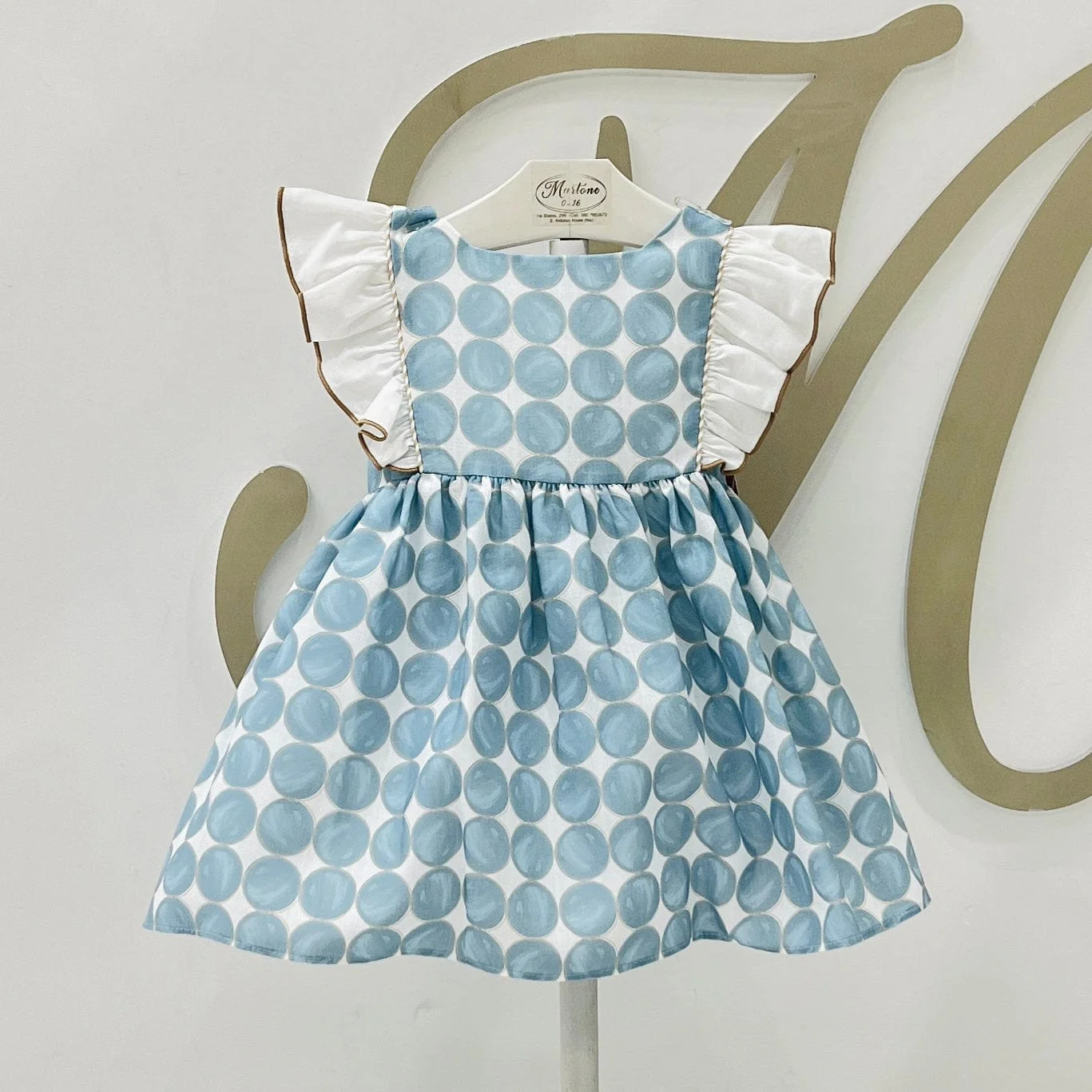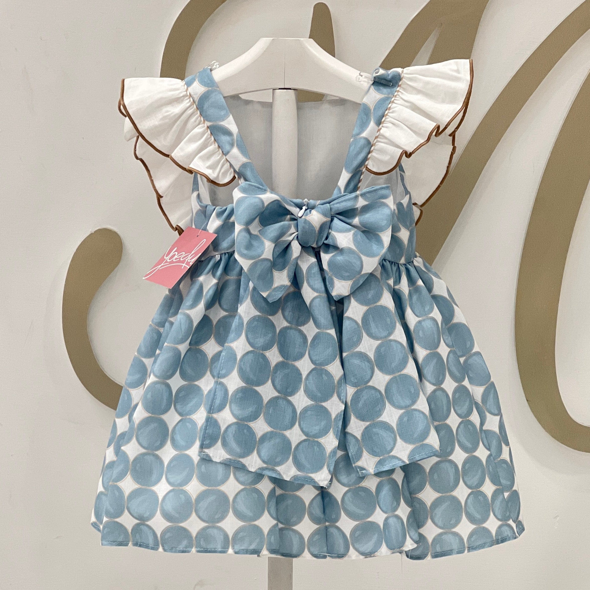 Abito in cotone stampato con giromanica arricchito da rouche e fiocco sul retro. cotonecod art: 0510VER-25