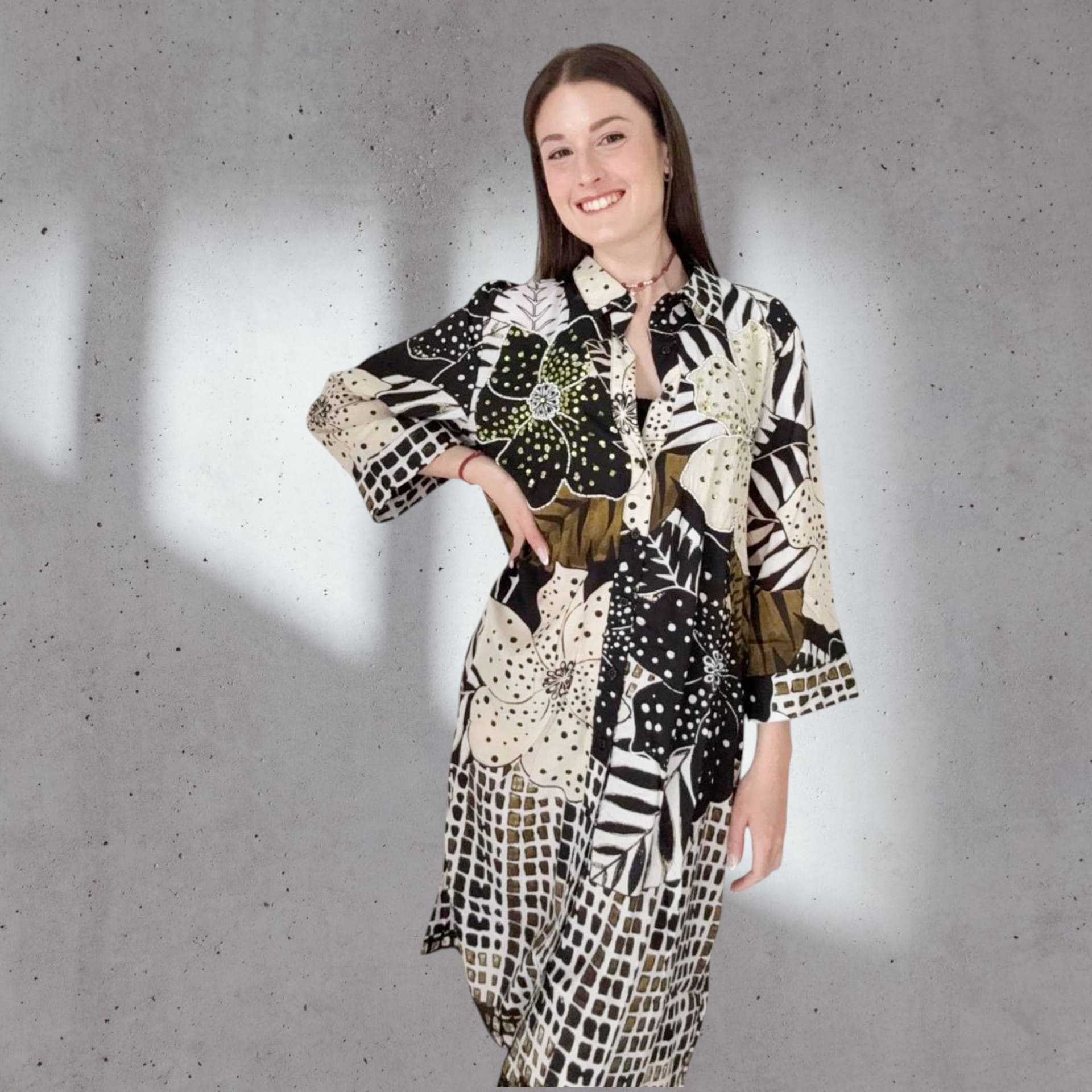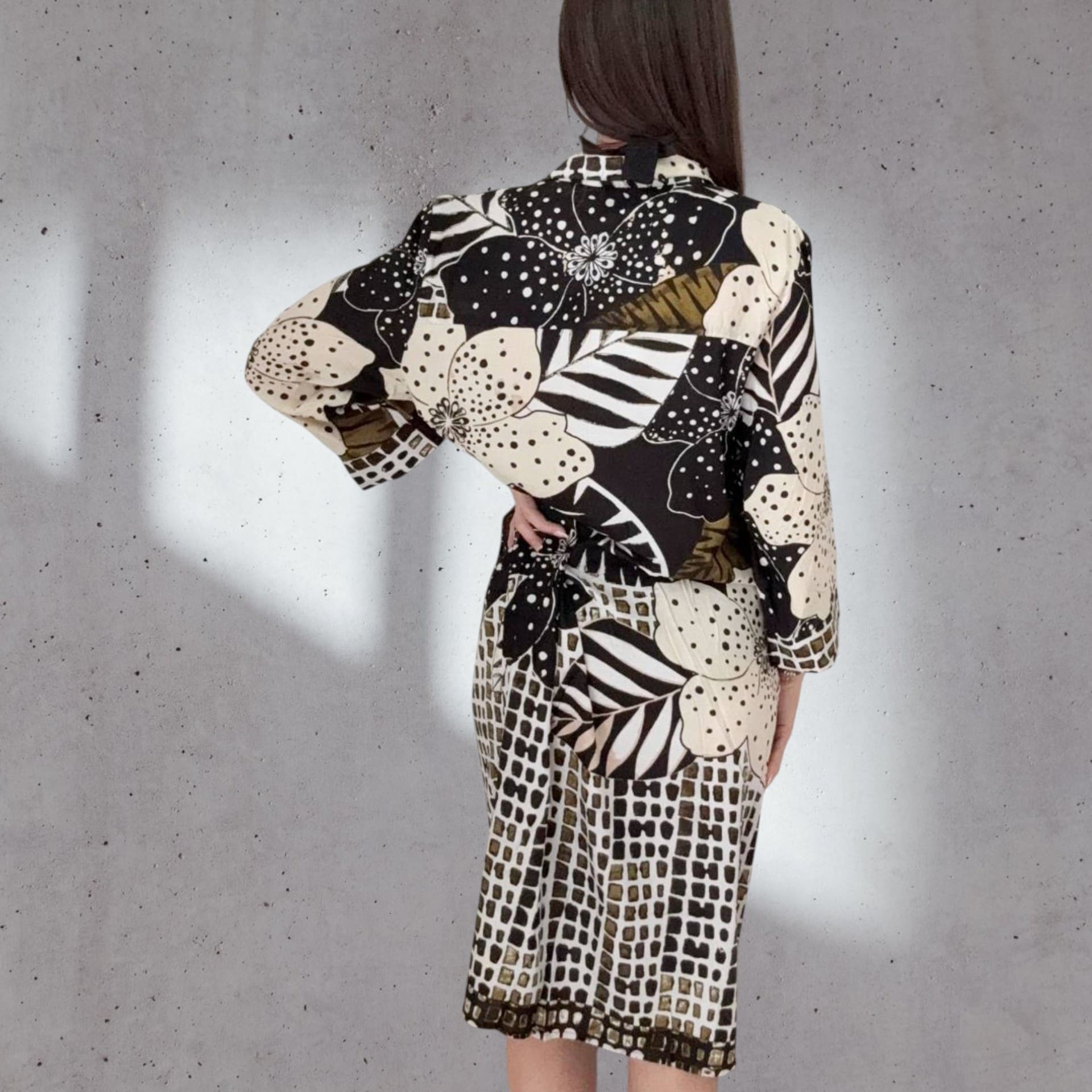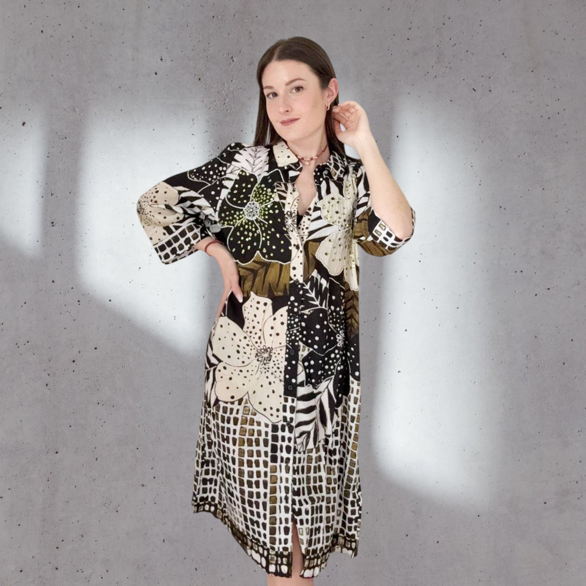 ✨ Abito chemisier stampato floreale-geometrico – eleganza, praticità e personalità in un solo capo.
