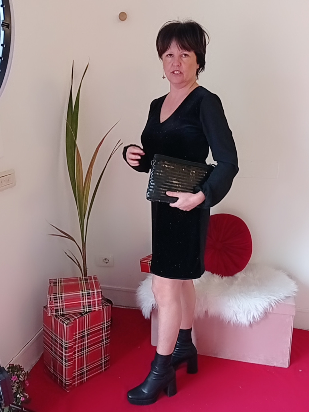 Abito elegante in velluto Art. Silvia Il nostro abito nero elegante in velluto è un capo d’abbigliamento perfetto per occasioni speciali. Il tessuto in velluto morbido al tatto dona al vestito un aspetto lussuoso, mentre la manica in voile aggiunge un tocco di eleganza. I punti luce posizionati strategicamente sul vestito creano un effetto di illuminazione sottile ma molto suggestivo. Il design dell’abito presenta una linea a tubino che valorizza la figura, con una lunghezza che arriva al ginocchio. La scollatura a V mette in risalto il décolleté, mentre la chiusura a zip sul retro assicura una vestibilità perfetta. Questo…