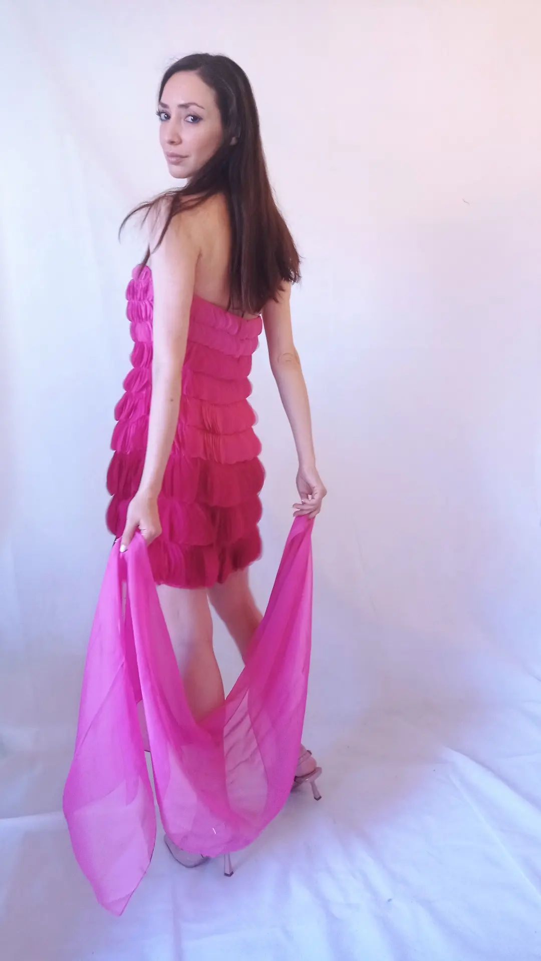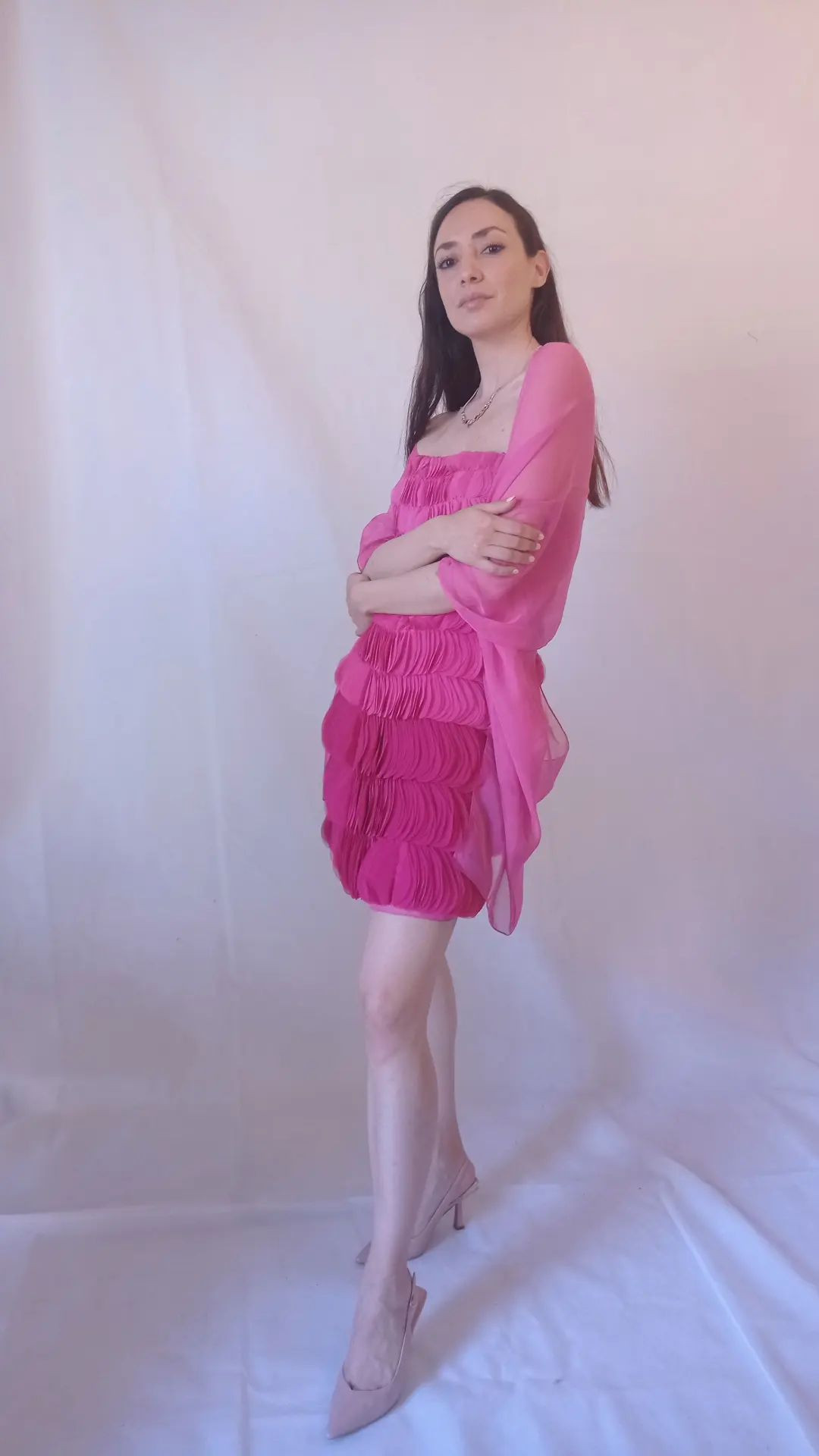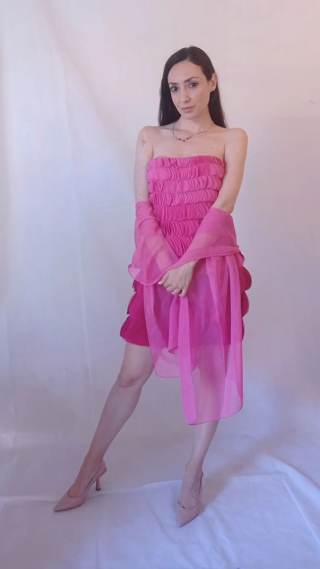 Abito rosa acceso cerimonia con stola Art. Piuma