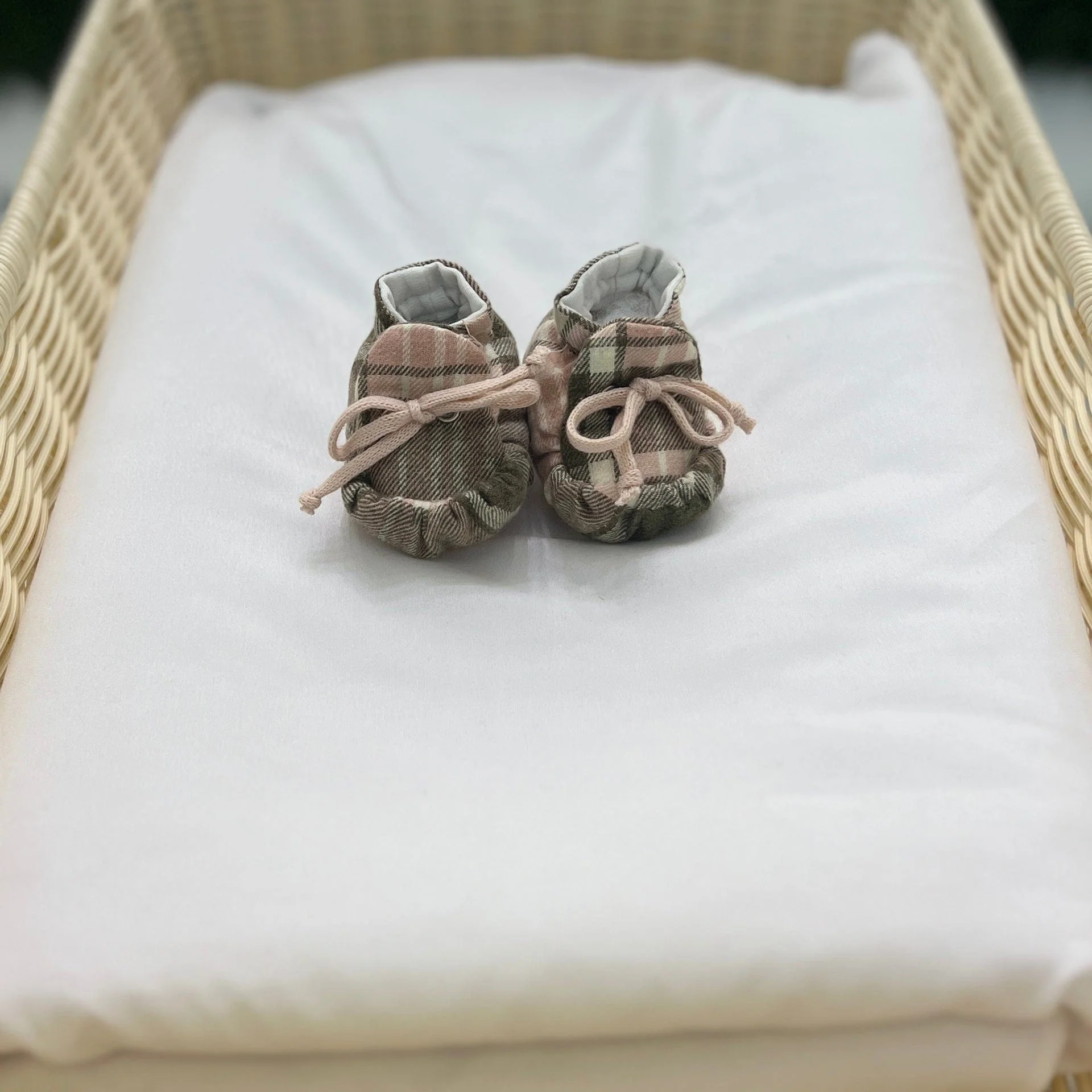 Babbucce nascita neonata in caldo cotone a quadri.