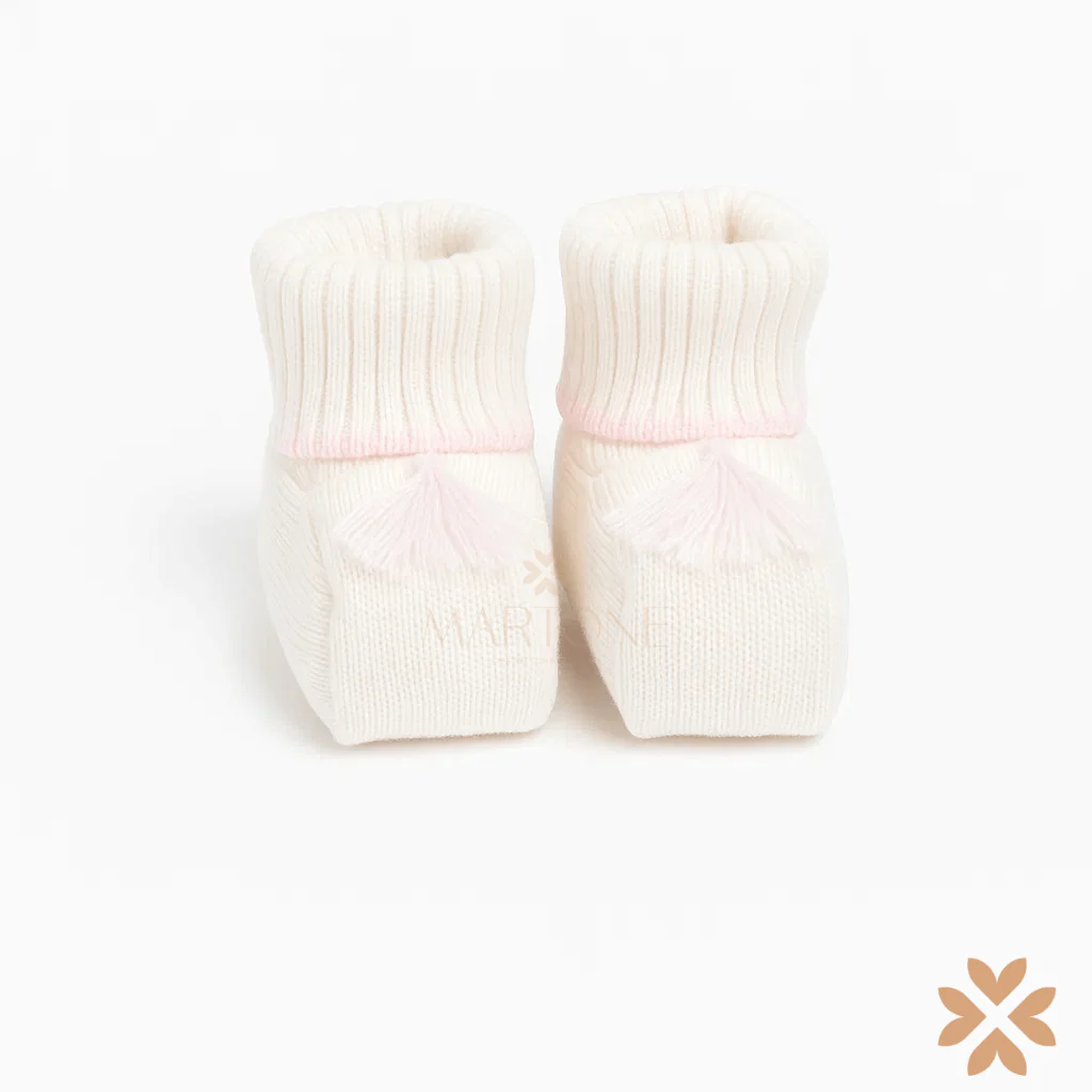 Babbucce in maglia per neonata. Morbide e perfette da abbinare al completo.