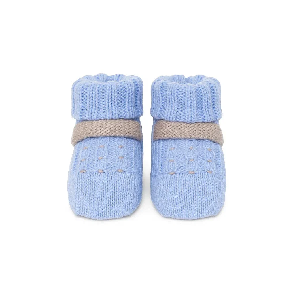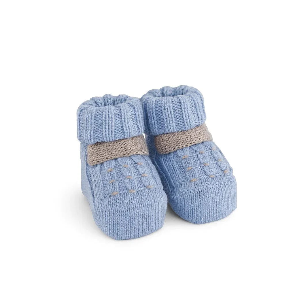 Babbucce in lana color celeste con nodini tortora. Calde e perfette da abbinare al completo. comp: 100% lanacod art: 3509.10