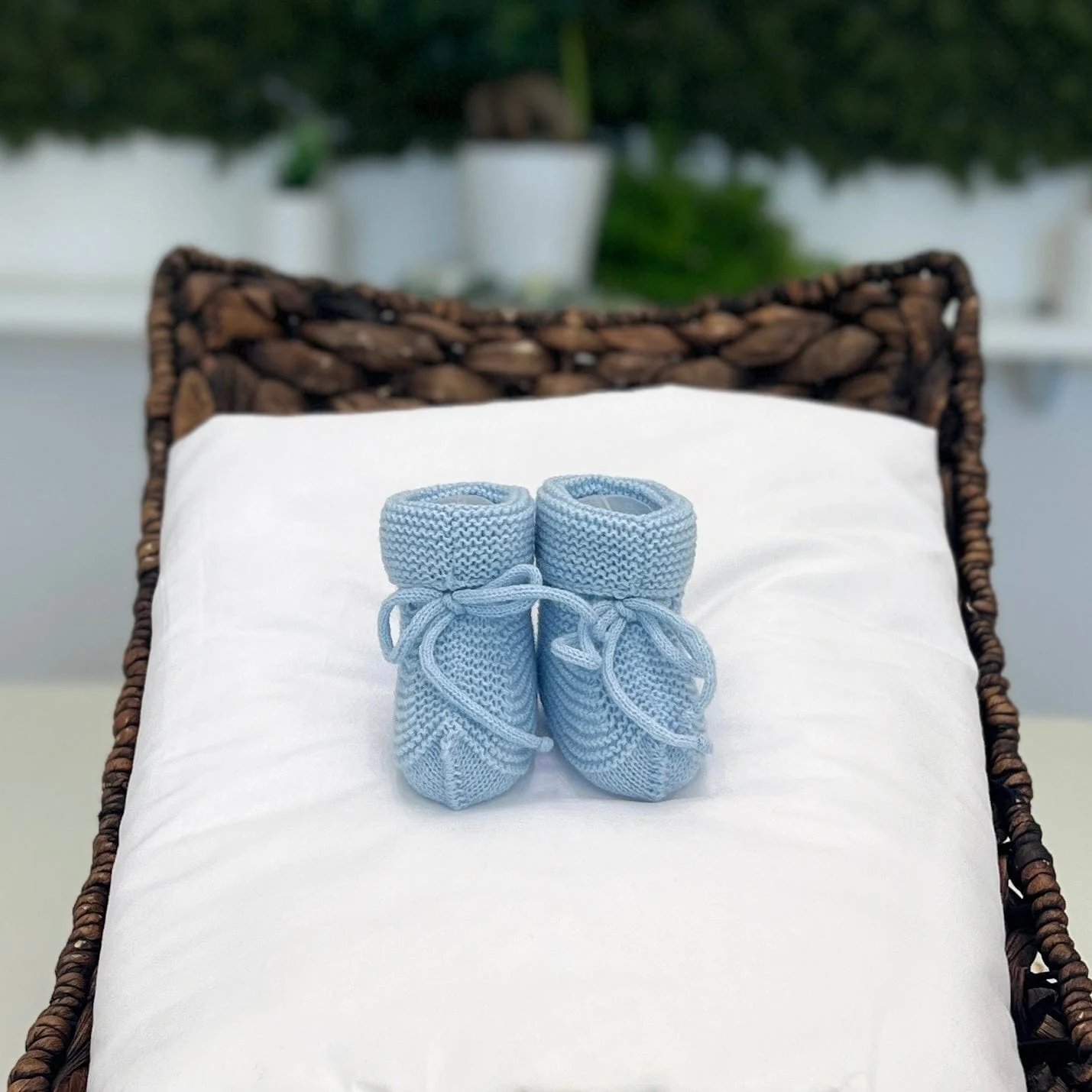 Babbucce in filo celeste e bianco – Primodì Bebè