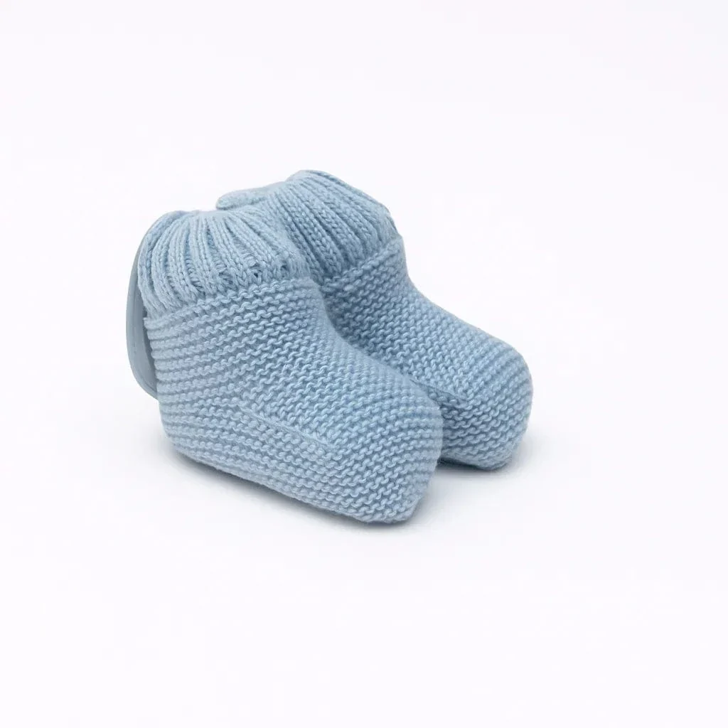 Babbucce in lana per neonato, morbide e avvolgenti, ideali per tenere i piedini al caldo con delicatezza. cod art: J25731comp: Acrilico