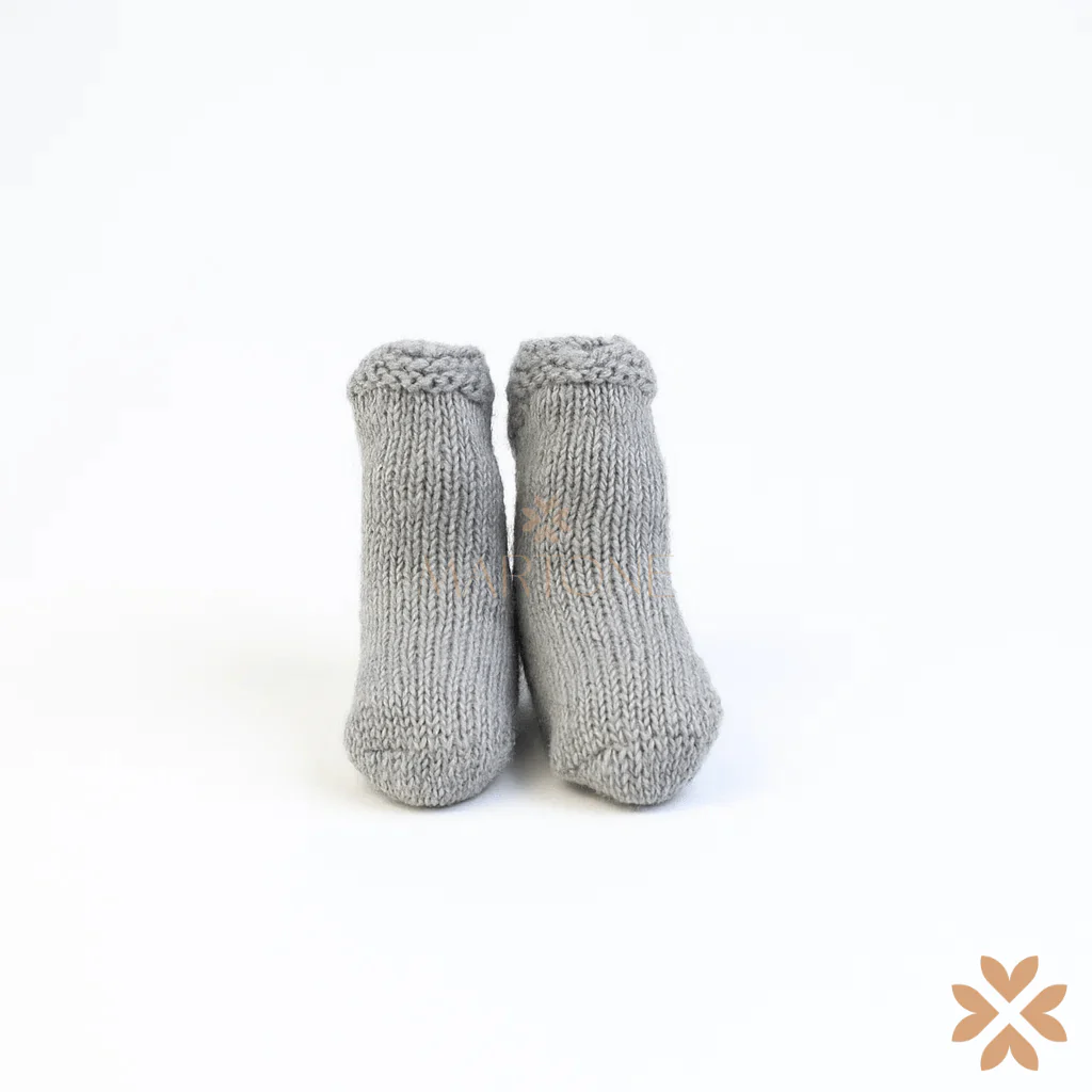 Babbucce neonato in lana con lavorazione a maglia rasata e bordo a costine.