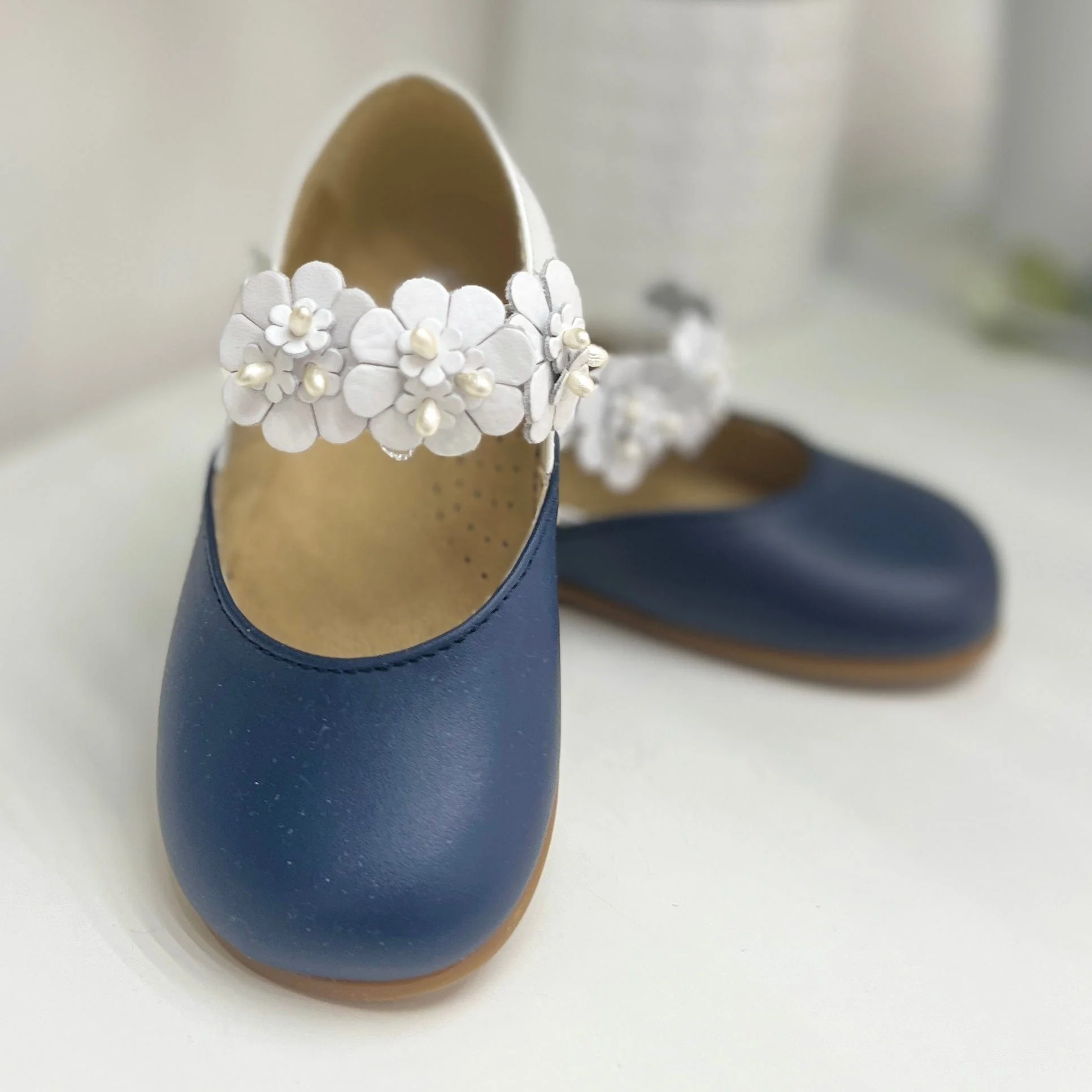 Ballerina in ecopelle bicolore con fiori removibili. SKU: B2605
