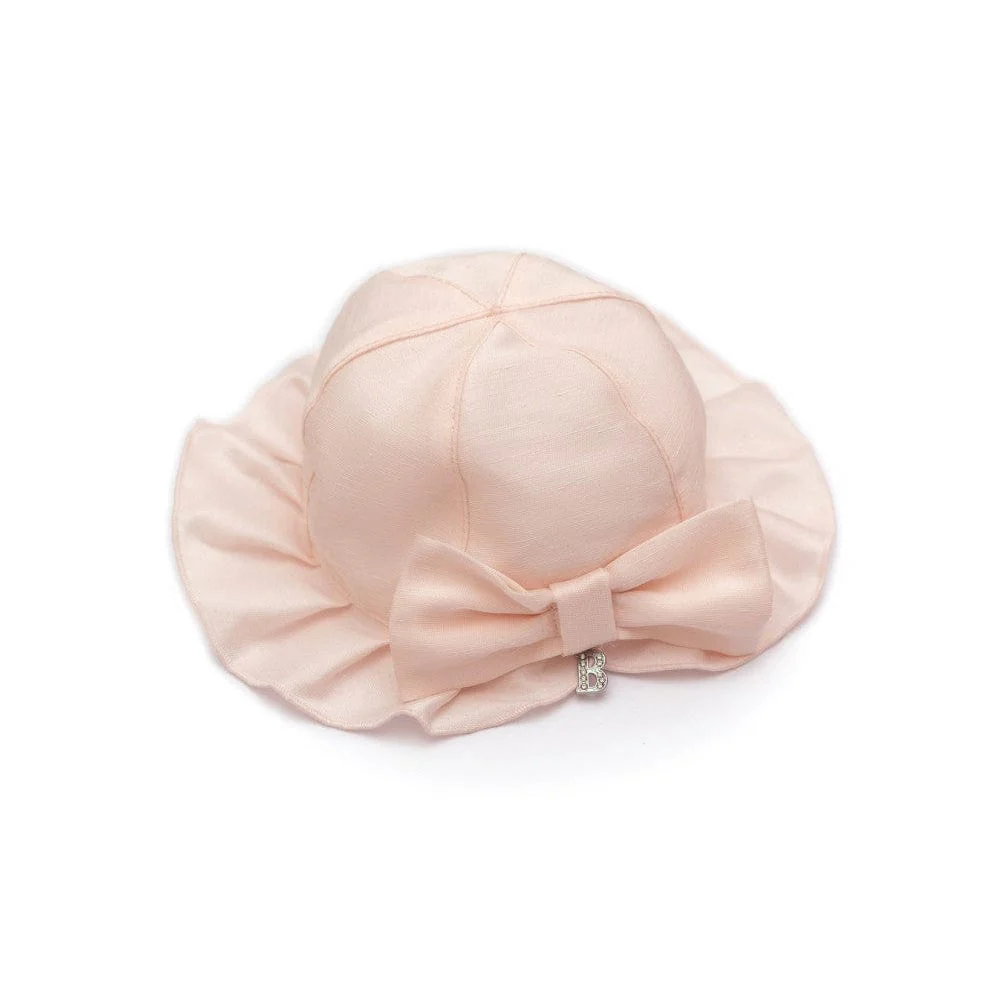 Cappello rosa con fiocco decorativo applicato e fodera in 100% cotone.