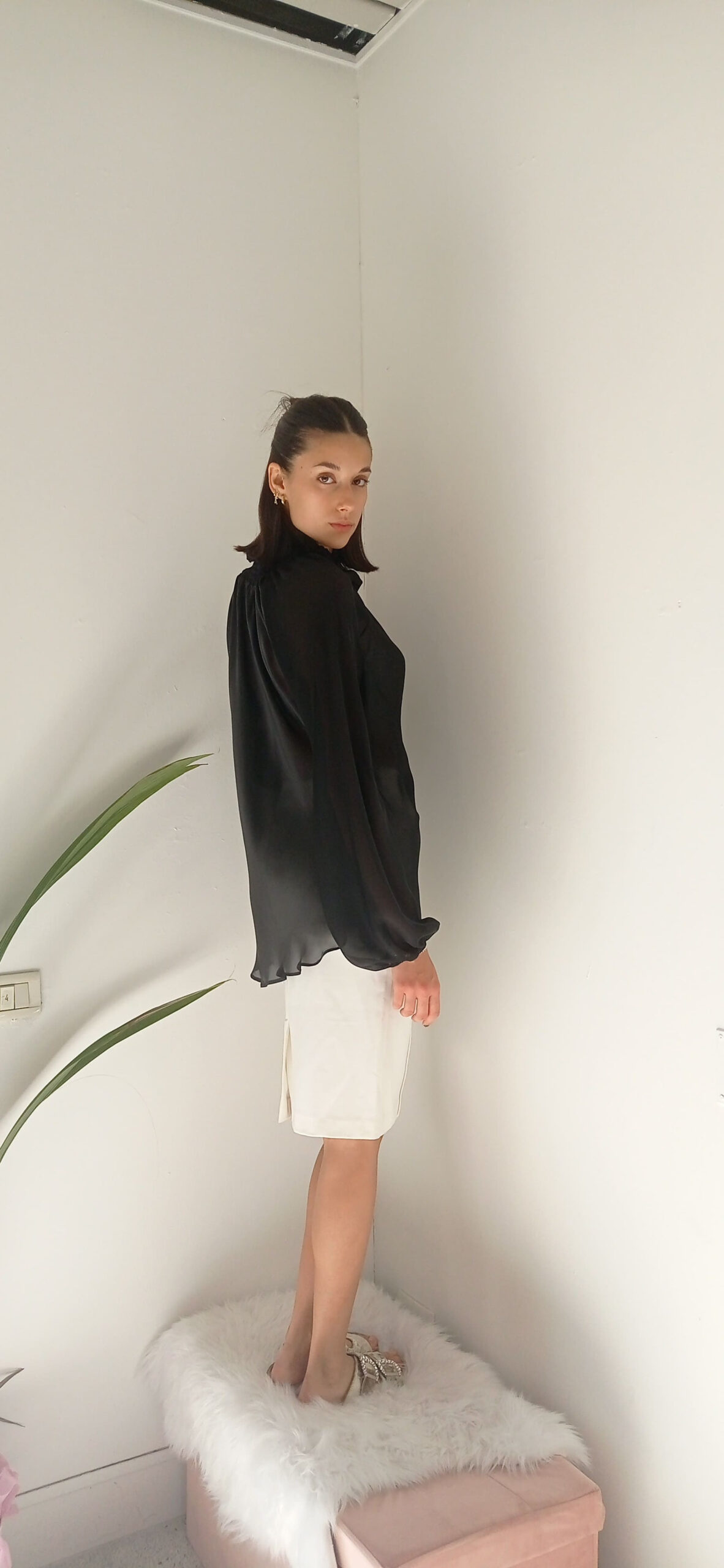 Una meraviglia di blusa effetto velato, da portare da sola per il tempo libero, un cocktails oppure sovrapposta ad una top per il lavoro o impegni più formali.