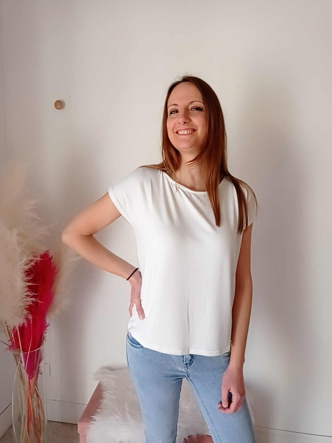 Questa blusa a mezze maniche in morbida viscosa è un capo strategico che risolve il look in pochi secondi. Disponibile in tre tonalità – bianco luminoso, jeans sofisticato e amarena vibrante – è pensata per accompagnarti dalla mattina alla sera con uno stile sempre impeccabile.