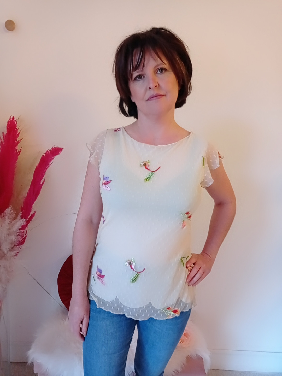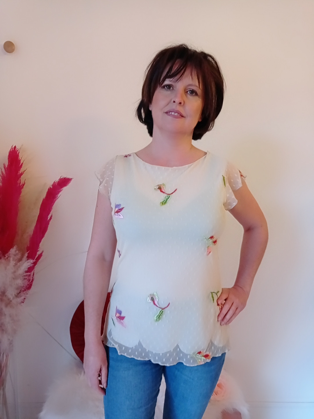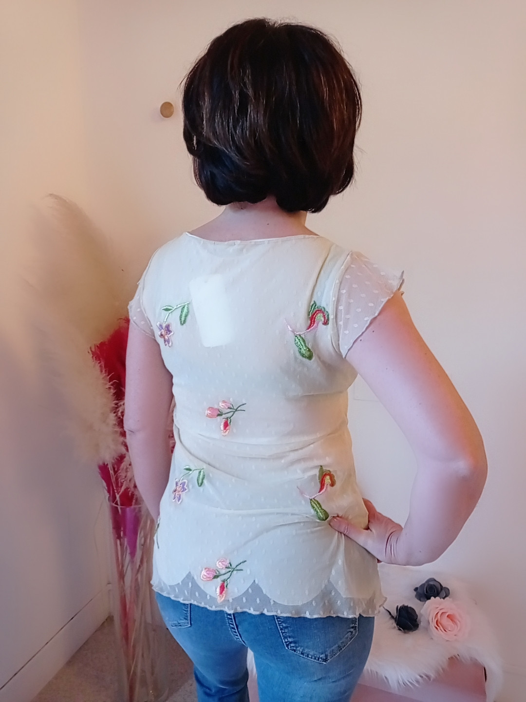 Blusa in tulle elegante e romantica con bordo petalo