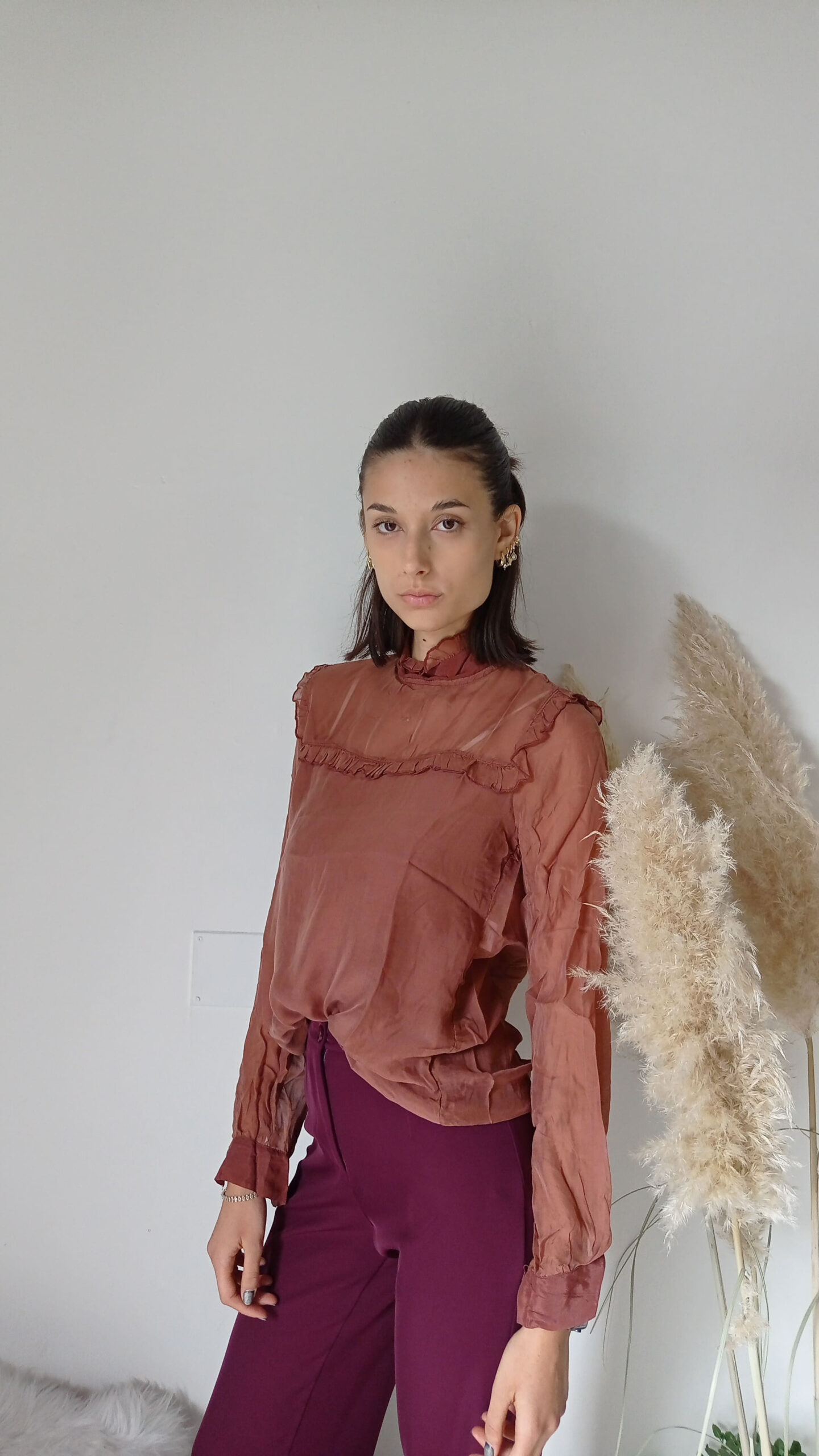 - Per eventi formali, indossa la blusa con una gonna fluttuante e orecchini drammatici.