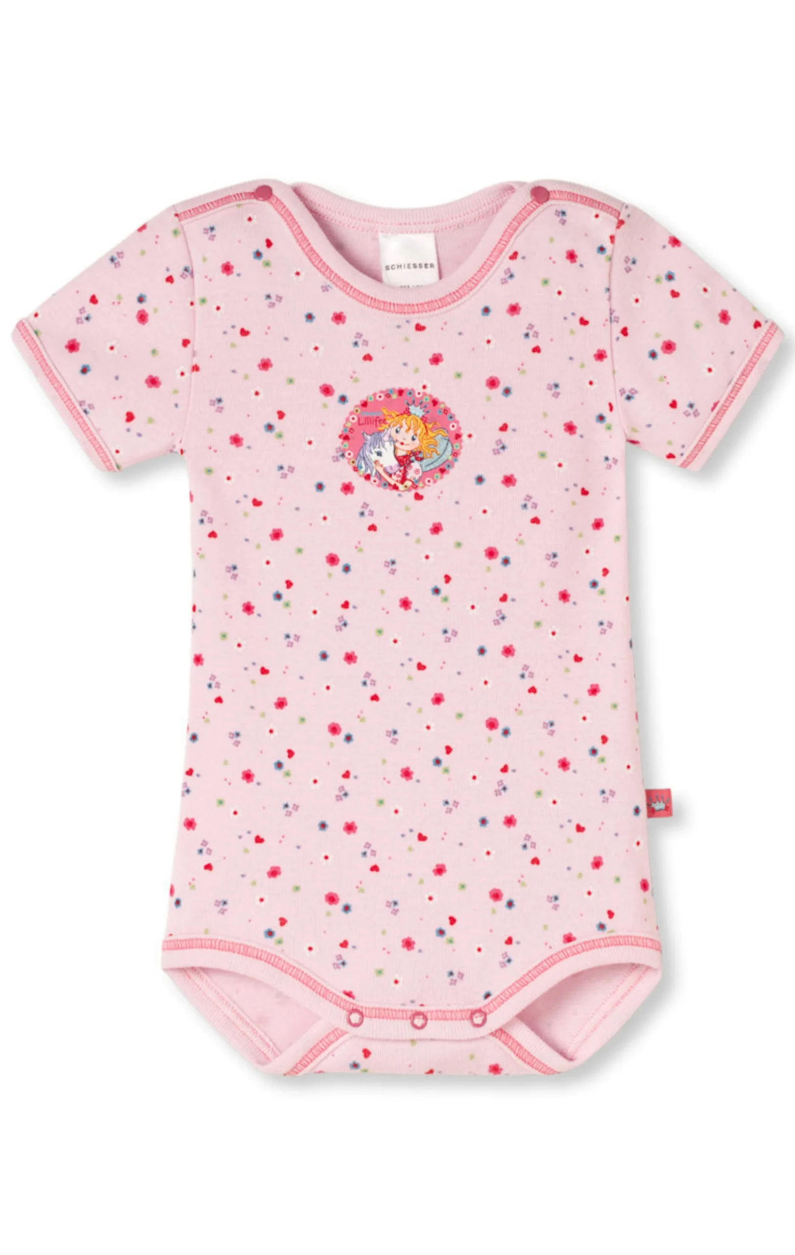 Body 1/2 manica firmato Schiesser, con simpatica stampa floreale, al centro la principessa Lillifee e il suo unicorno.