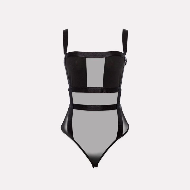 Strisce decorative con materiale trasparente che accentuano le forme del corpo Tessuto: spandex Taglia Petto (cm) Vita (cm) Lunghezza (cm) S 74-84 62 66 M 78-88 69 67 L 82-92 73 68 XL 86-96 77 69