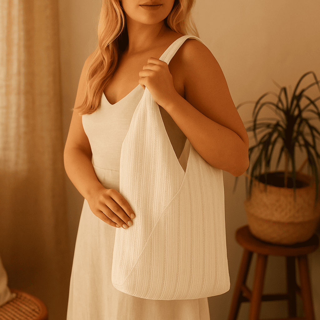 Realizzata in tessuto resistente ma leggero, questa shopper boho chic è la compagna ideale per le tue giornate dinamiche: capace di contenere tutto il necessario, ma abbastanza raffinata da accompagnarti anche a un pranzo tra amiche o a una passeggiata in centro. La sua forma morbida e la linea fluida si adattano a te, seguendo i tuoi movimenti senza rigidità.