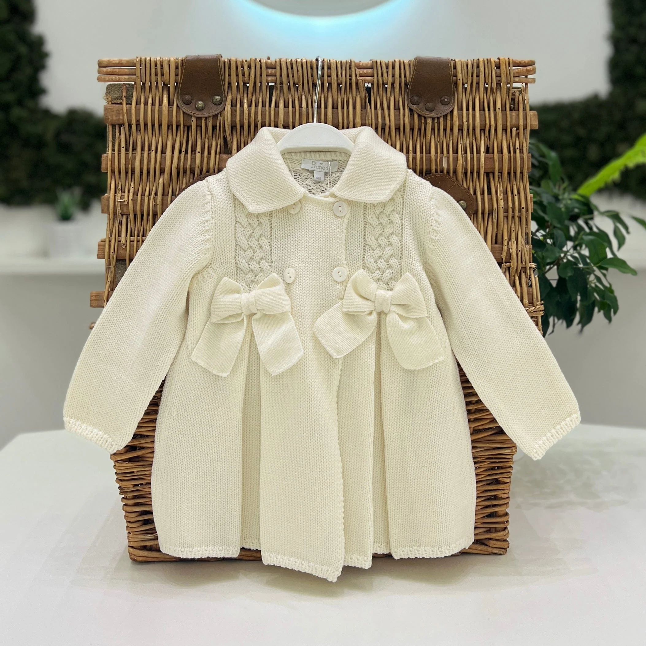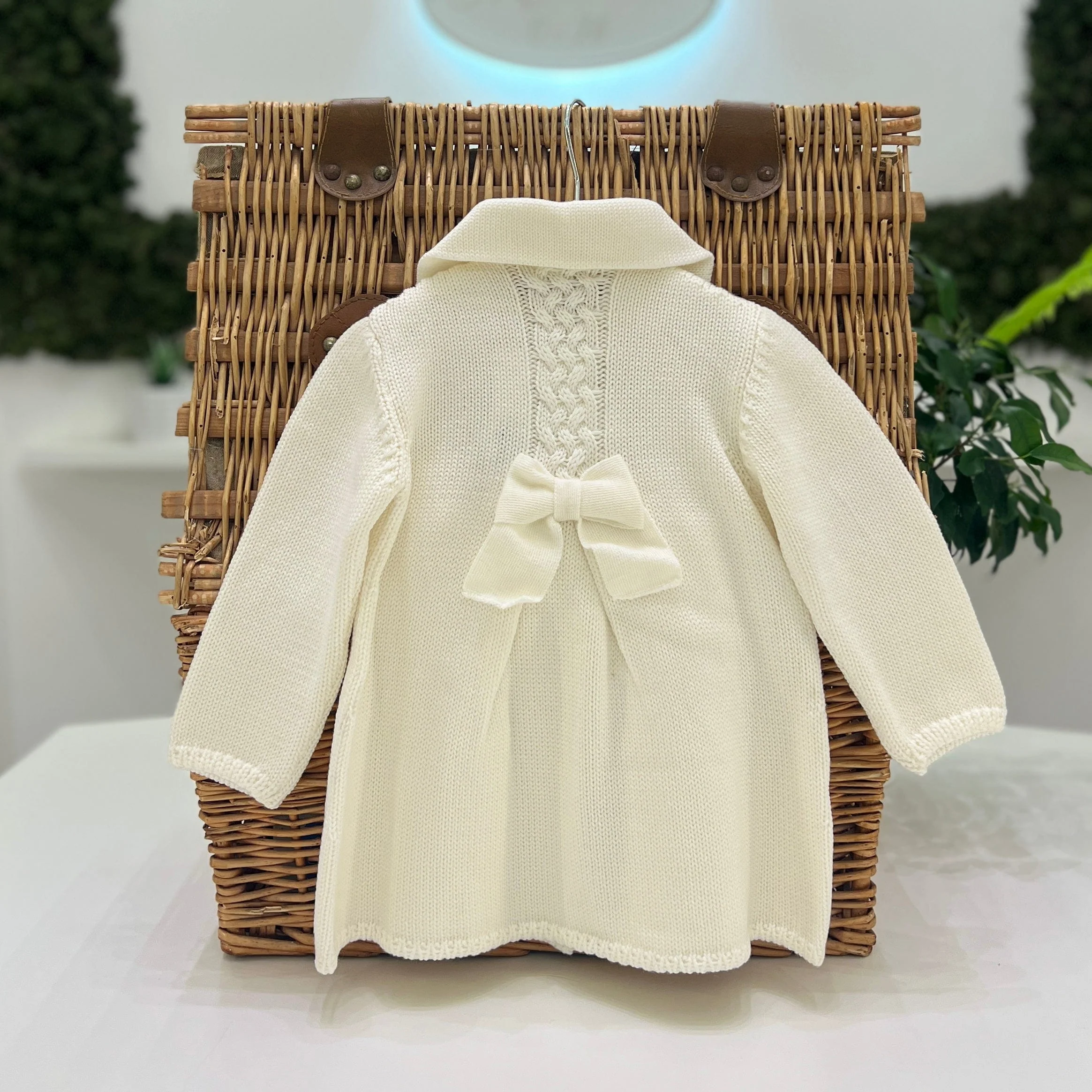 Cappotto in maglia intrecciata e fiocchi in 100% lana merino. SKU: 3350.6