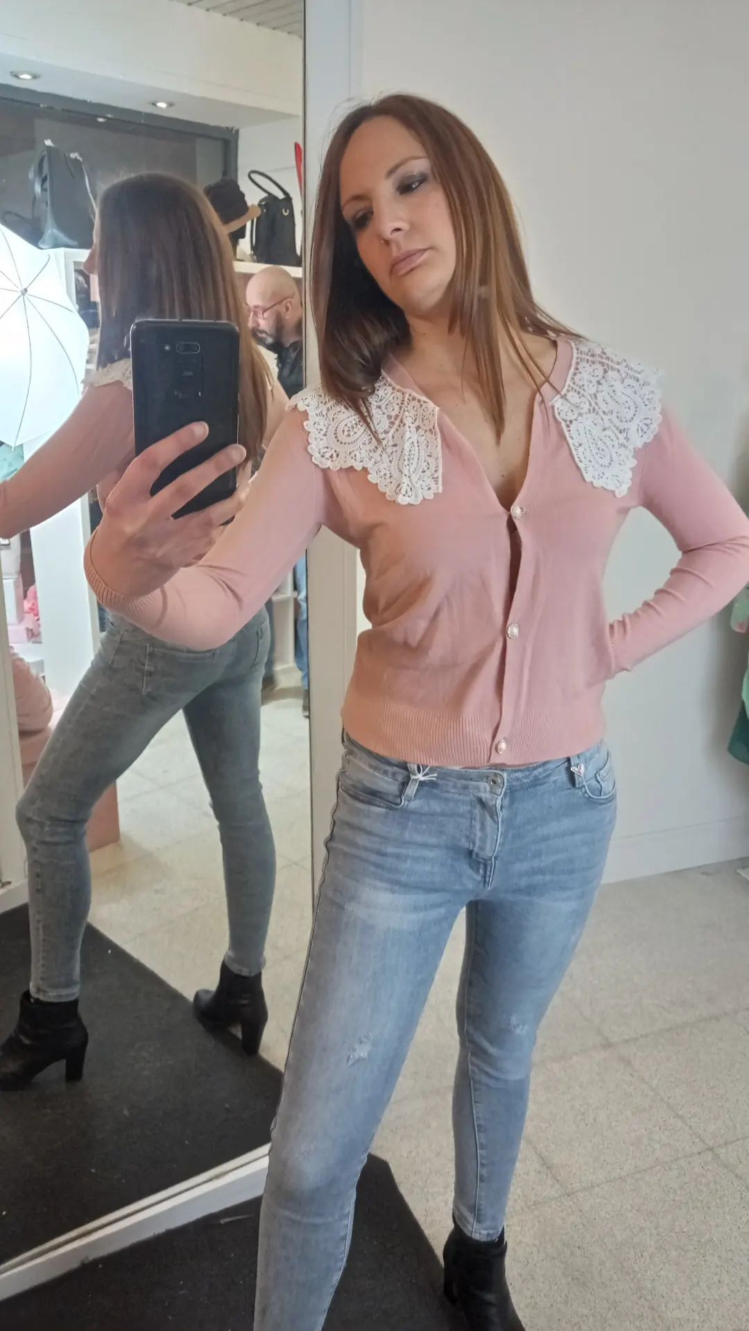 Cardigan Collone pizzo Art. Fiore. Classico e romantico questo cardigan è per la donna che ama lo stile bon ton un pò retrò. taglia unica, vestibilità 38-44