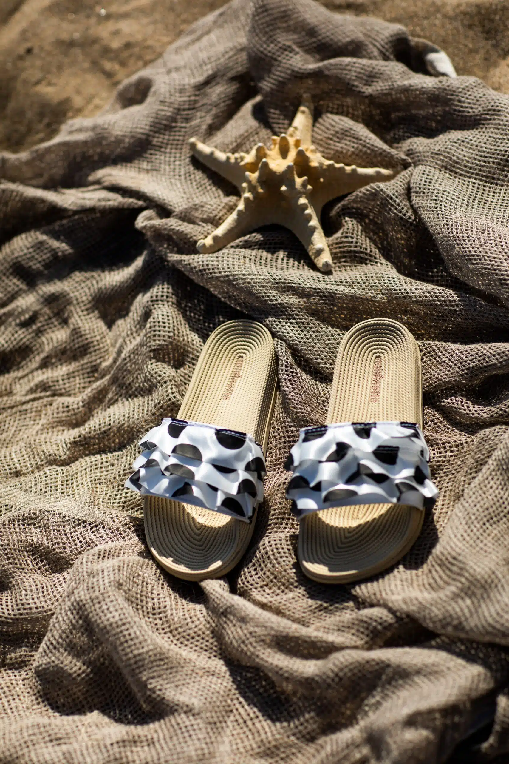 Ciabatta donna con texture plissettata con stampa pua’