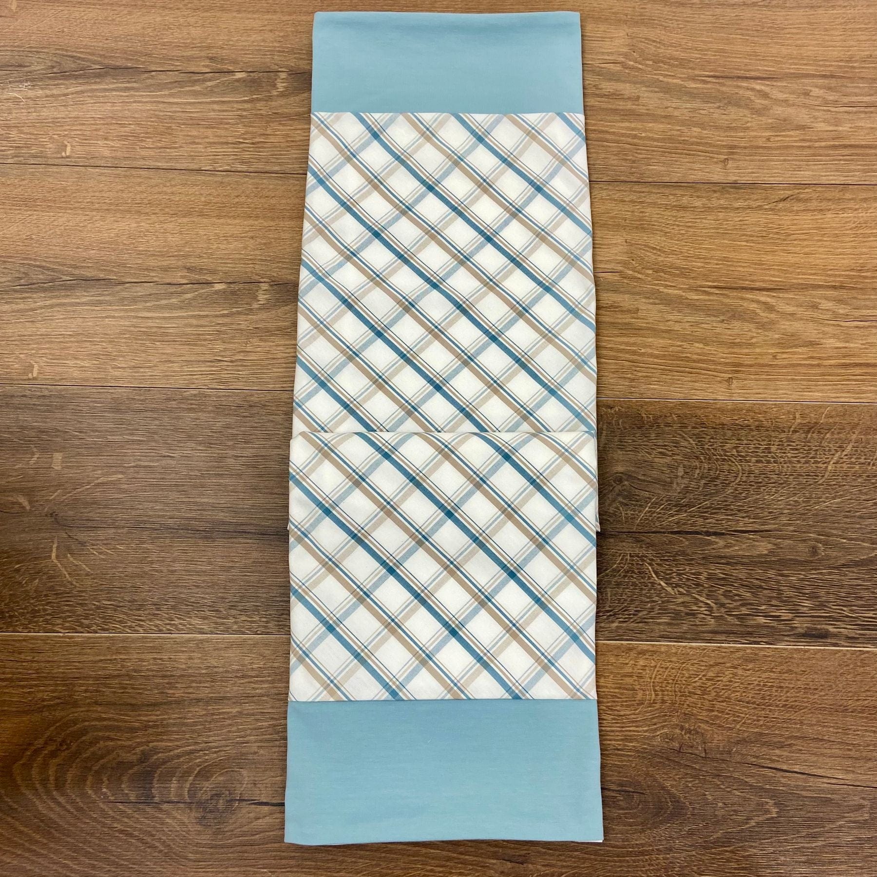 Copertina a quadri con bordatura tinta unita.