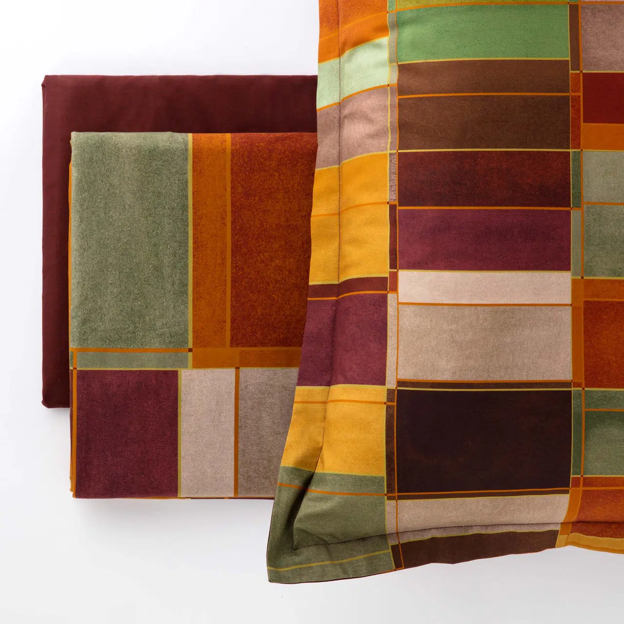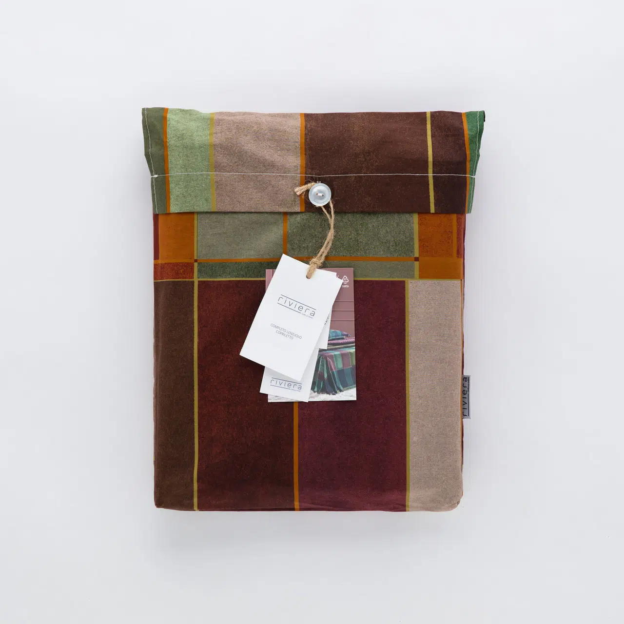Completo lenzuolo copriletto in percalle Un patchwork rivisitato nel quale il motivo tartan viene astratto, ripulito e trasformato in riquadri che si accostano in maniera irregolare. Le superfici sono mosse da tratti, e i colori sono decisi e pieni. Un disegno allegro, che si accosta perfettamente alle proposte letto Riviera in fantasia floreale. La confezione […]
