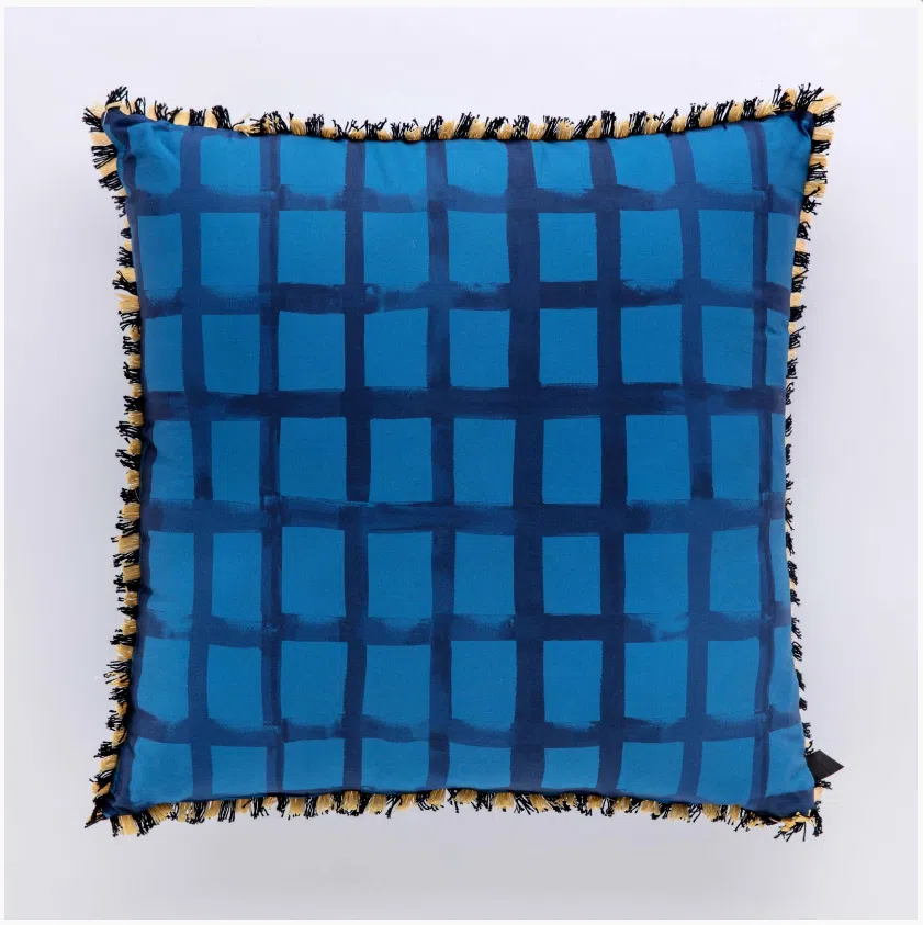 Cuscino arredo double in raso di cotone 280 fili con frangetta perimetrale. Imbottitura 430 gr. – 100% poliestere.