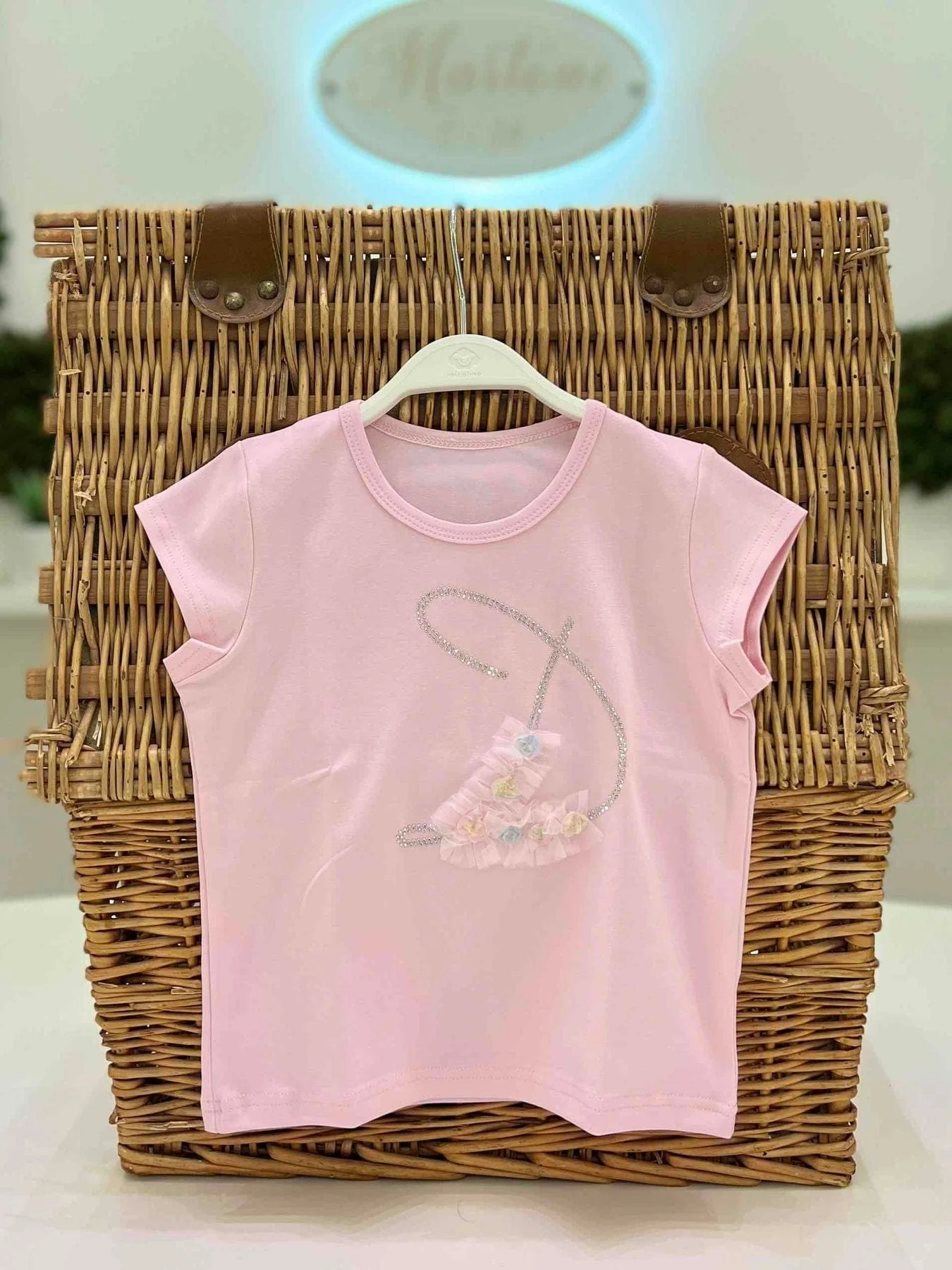 T-shirt bimba rosa con strass.
