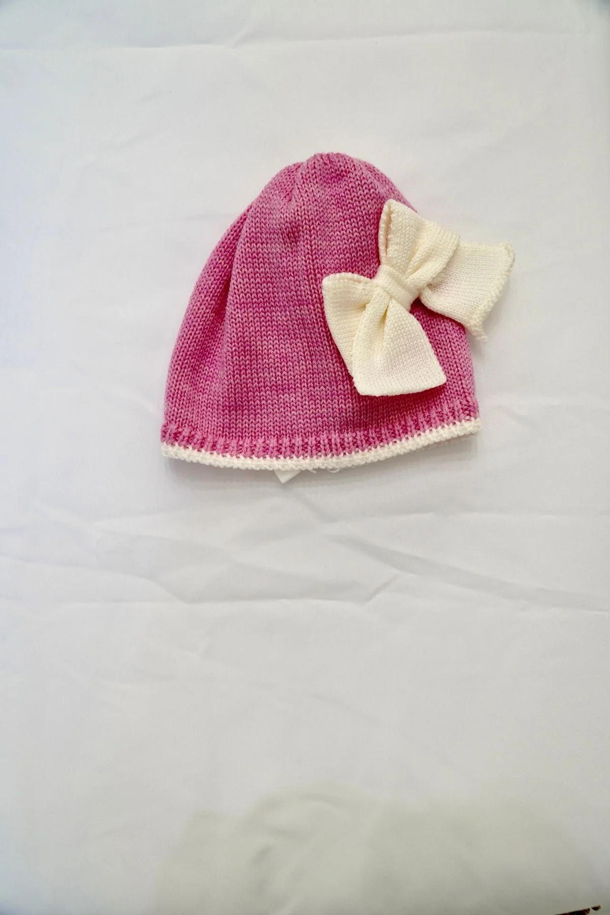 Cappello per neonata in pura lana con fiocco, rosa fragola