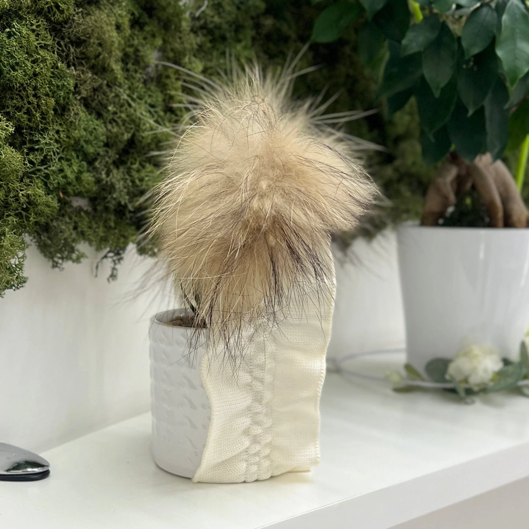 Fascia elasticizzata con pompon in ecofur. SKU: LU5290