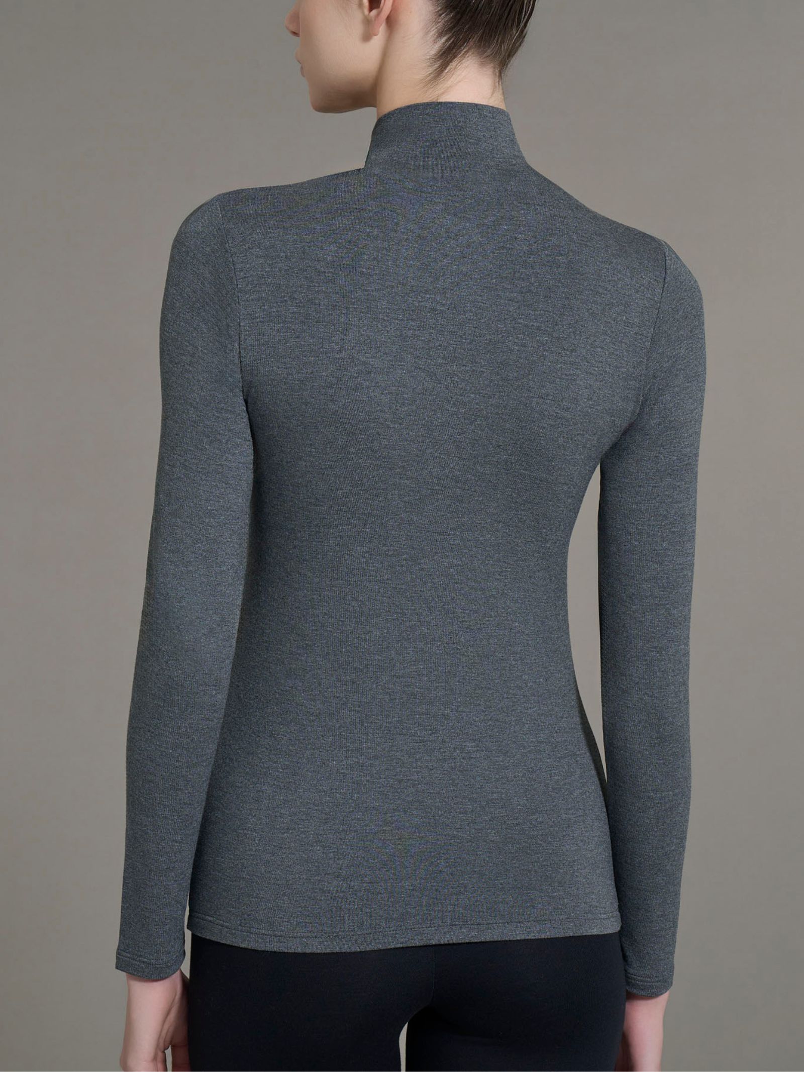Maglia lupetto a manica lunga in ecoviscosaRealizzata in una delicata viscosa elasticizzata, calda e incredibilmente morbida sulla pelle. Vestibilità skinny: segue dolcemente le curve del corpo, garantendo comfort e libertà di movimento. Design pratico e versatile: perfetta da indossare da sola o sotto altri capi per un look a strati. Tessuto Eco Viscosa: jersey lucente, […]