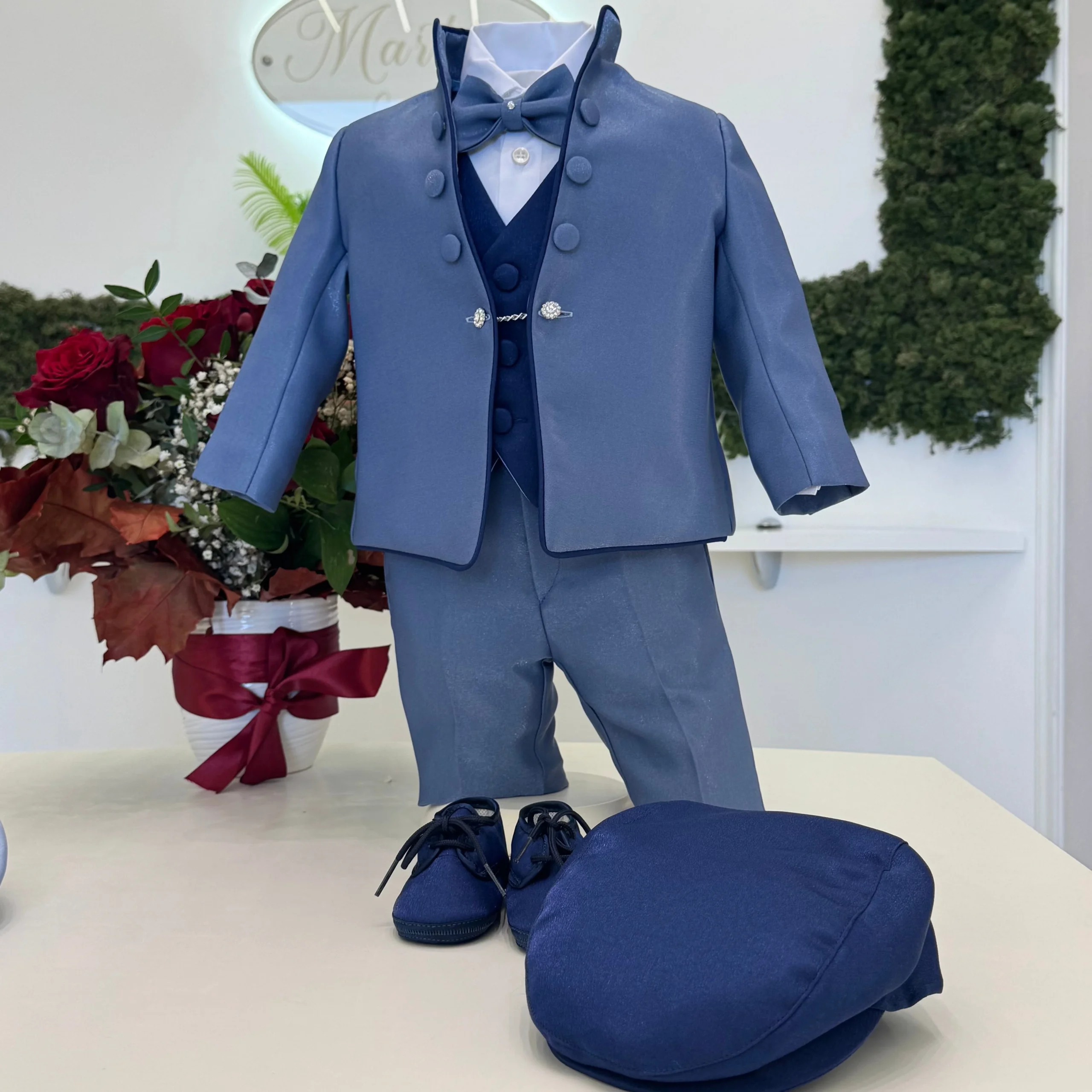 Coppola elegante per neonato, dal design sofisticato e chic. Realizzata con tessuto di alta qualità, aggiunge un tocco raffinato e distintivo a qualsiasi outfit da battesimo. Abbinala ai Luxury Dress Leòn e Daniel per il look perfetto! NB: IL PREZZO DI QUESTO ARTICOLO FA RIFERIMENTO UNICAMENTE ALLA COPPOLA