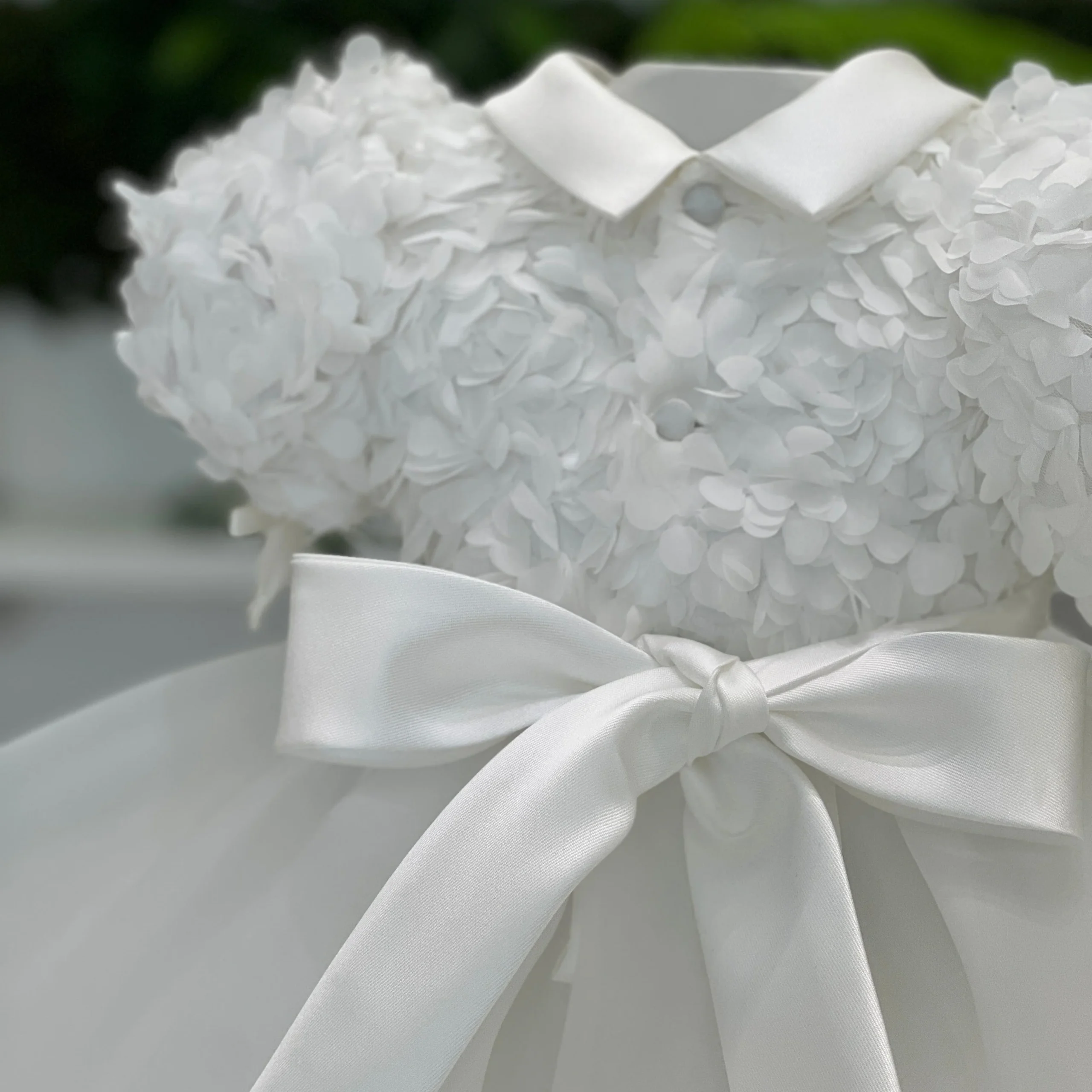 Il Luxury Dress Rosalba è un connubio di eleganza e stile, con il suo corpetto caratterizzato da un tessuto 3D a petali effetto seta che donano un aspetto sognante all’abito. Le maniche a sbuffo aggiungono un tocco romantico e delicato. La gonna, in organza di seta, è a ruota, ampia e vaporosa, conferisce volume e leggerezza all’intero abito.