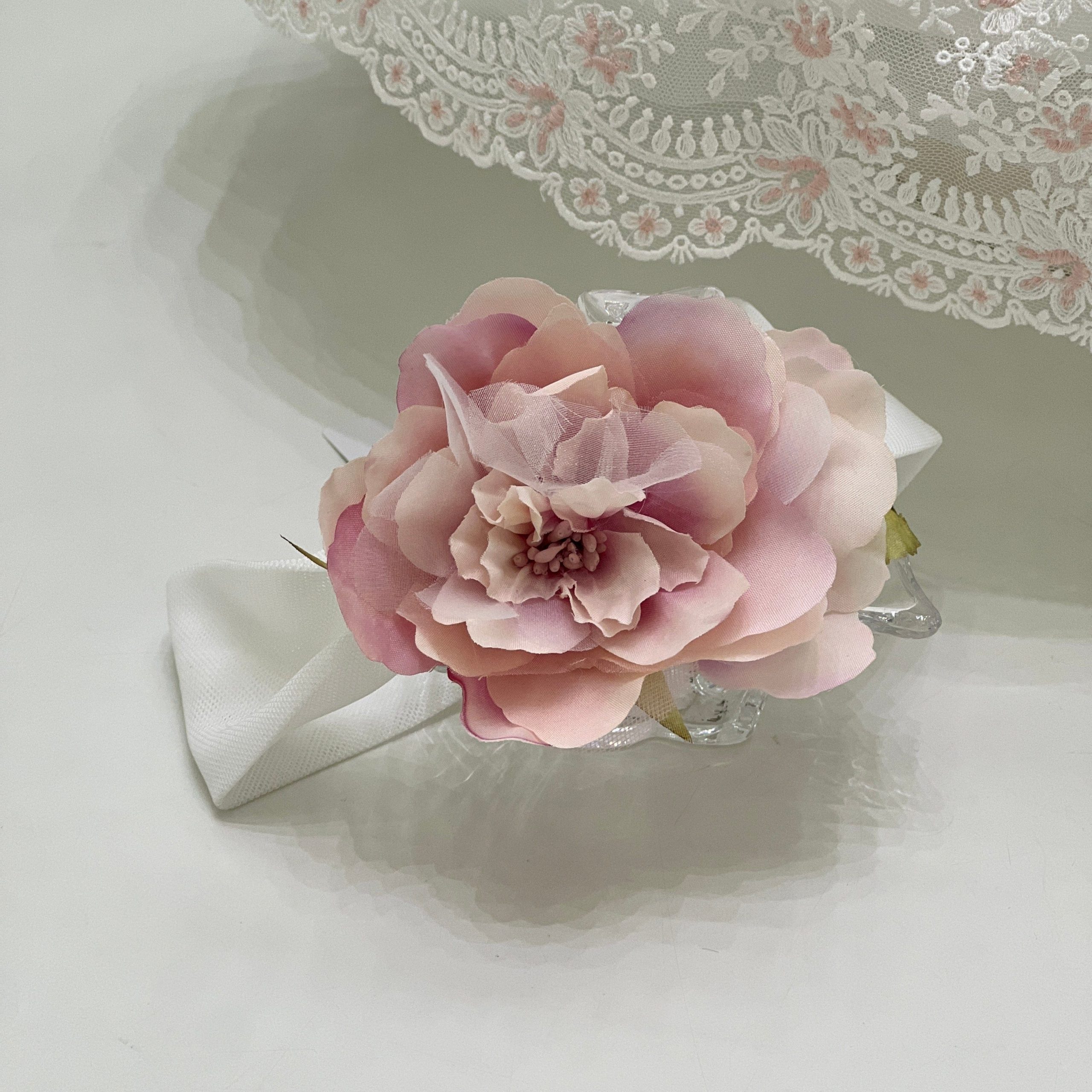 Fascia battesimale realizzata in tulle elasticizzato, impreziosita da un raffinato dettaglio floreale. Perfetta per completare con grazia l’outfit della cerimonia, aggiungendo un tocco di raffinatezza e armonia. L’accessorio ideale per un look speciale.
