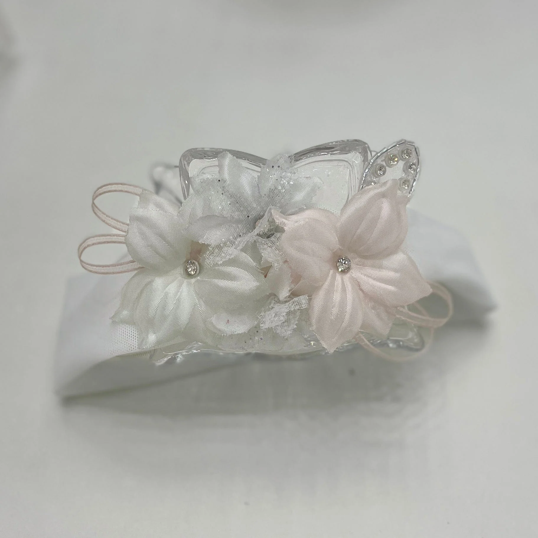 Fascia in tulle elasticizzato, con applique floreale e punti luce.