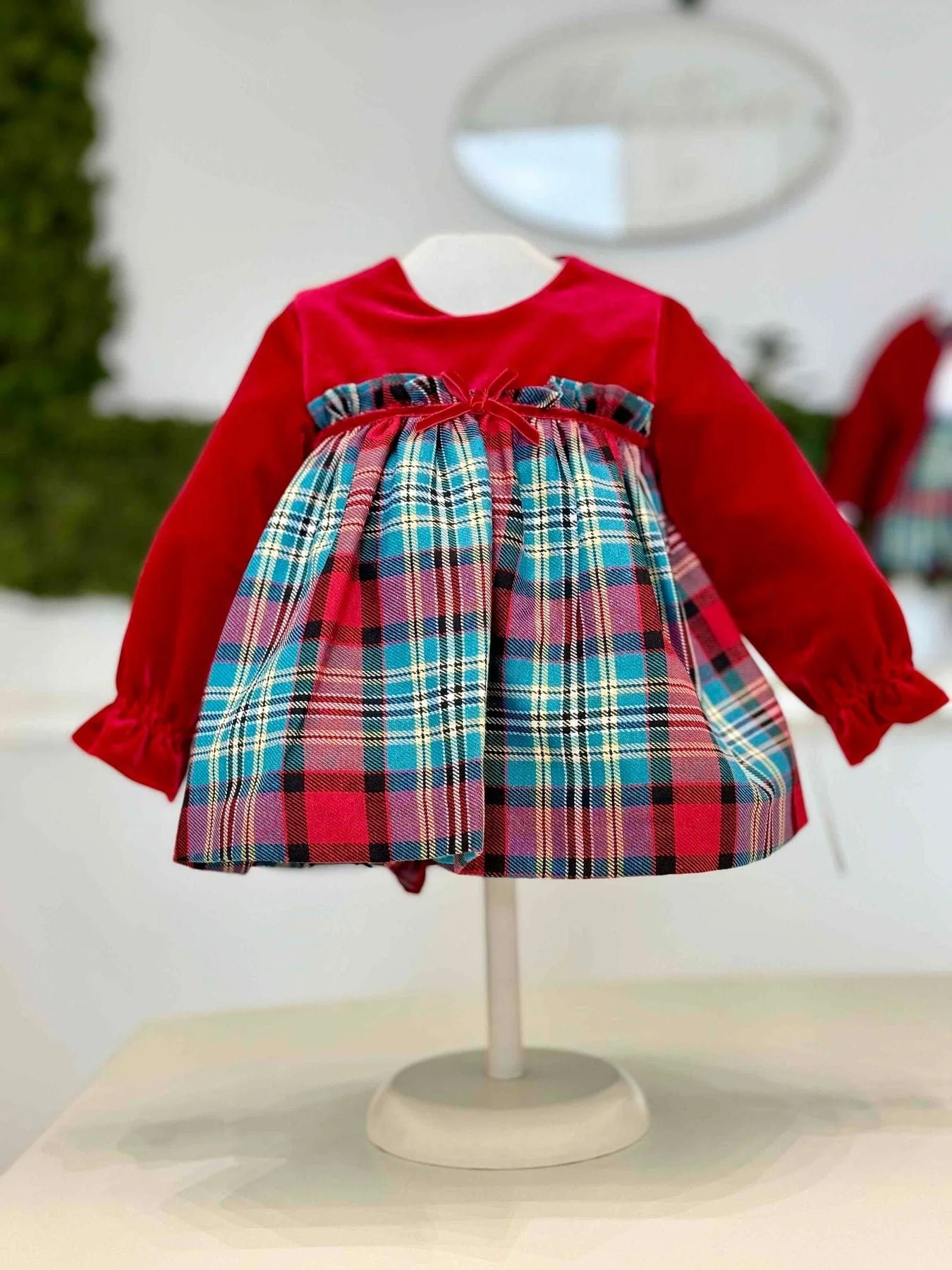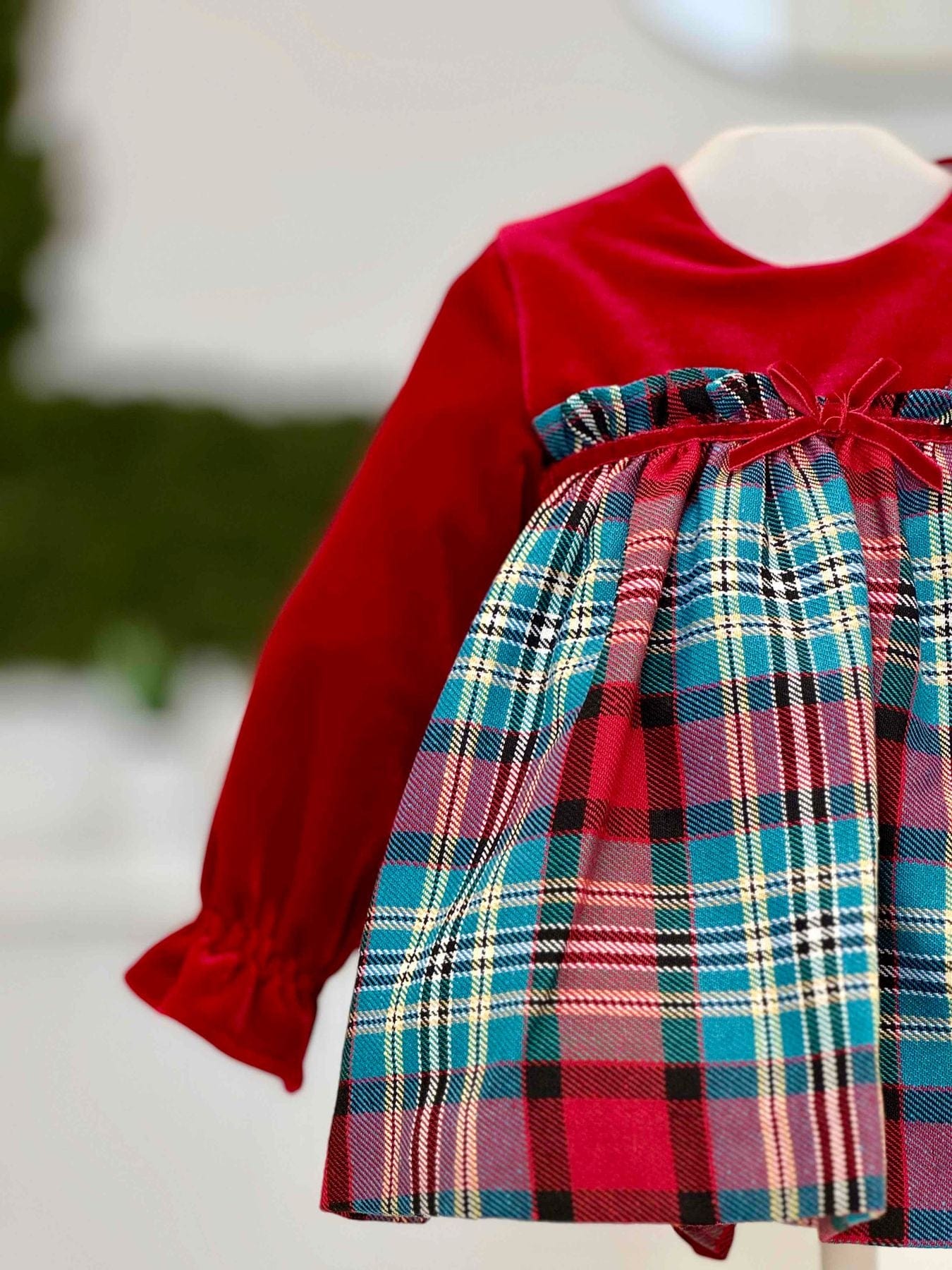 Abito velluto e scozzese con culotte scozzese