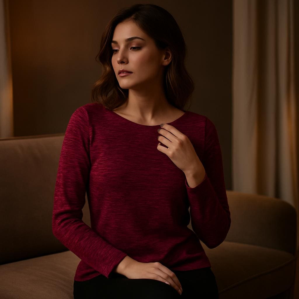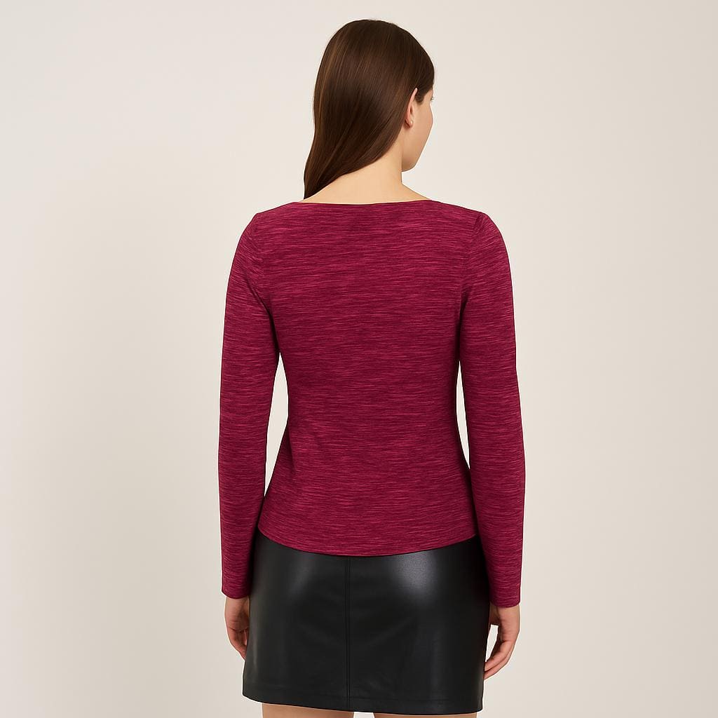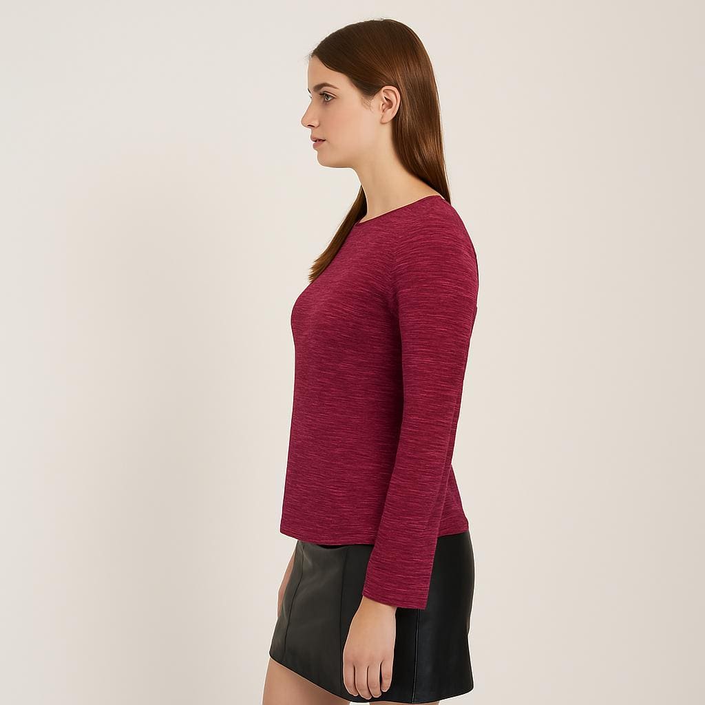 Maglia donna elegante in lurex bordeaux – vestibilità comoda, luminosa e versatile per ogni occasione.