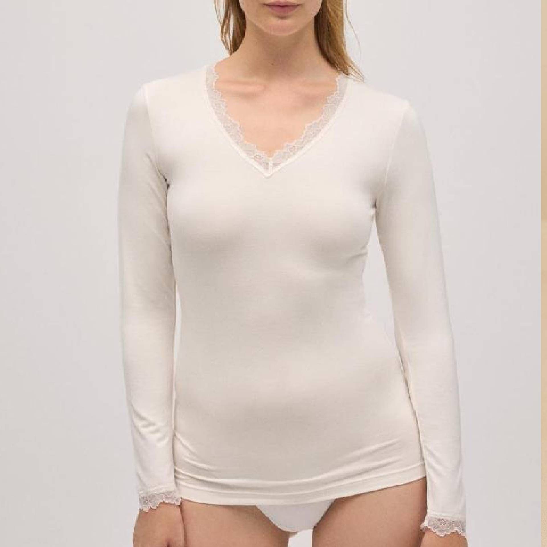 Maglia in bambù antibatterica a manica lunga con pizzo – Eleganza naturale e comfort assoluto | La Strega di Biancaneve
