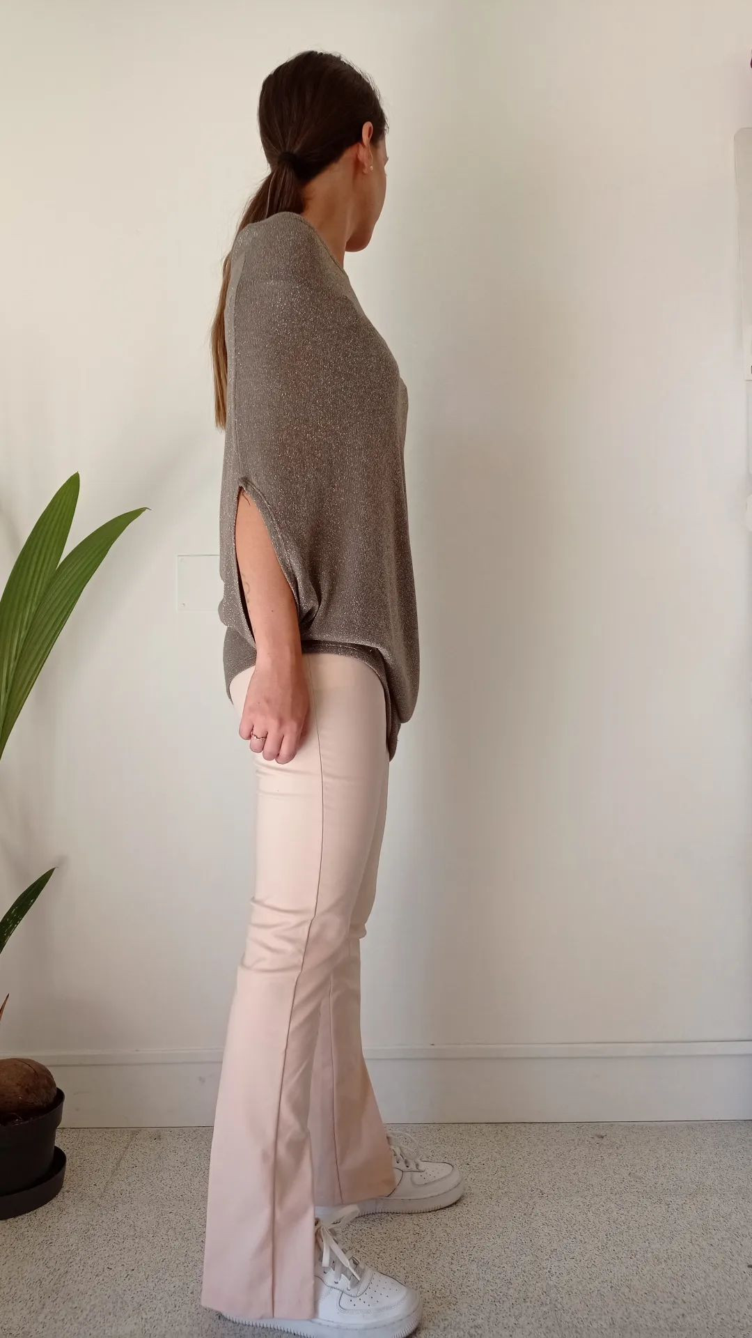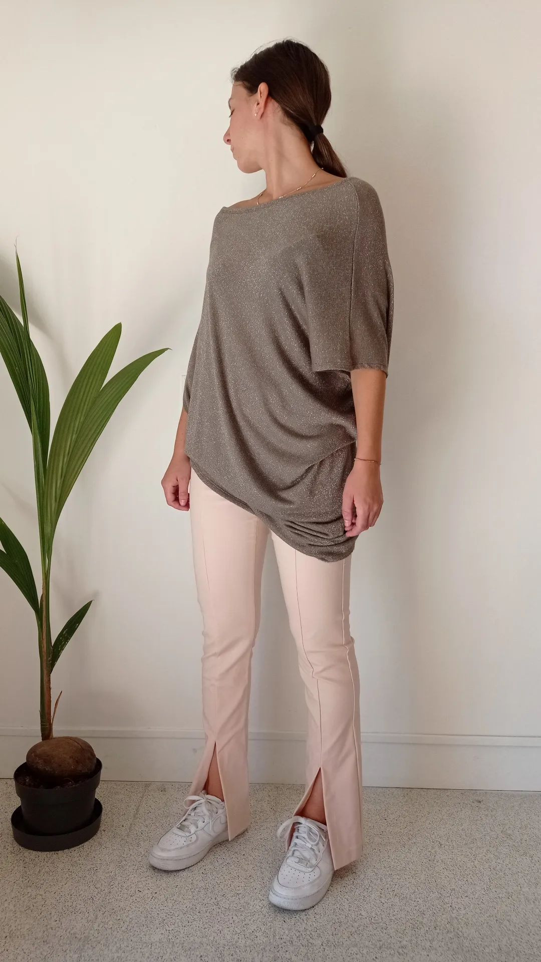 maglia lurex taglio over grigio tortora lurex