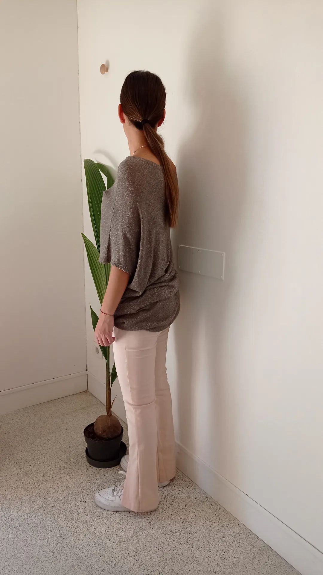 maglia lurex taglio over grigio tortora lurex.